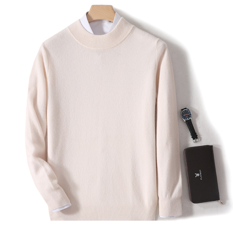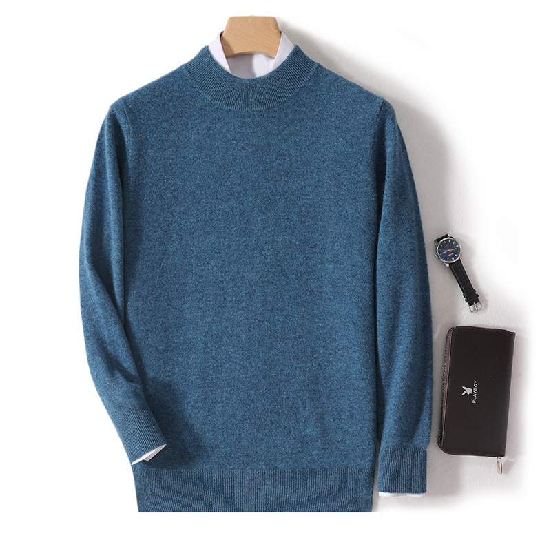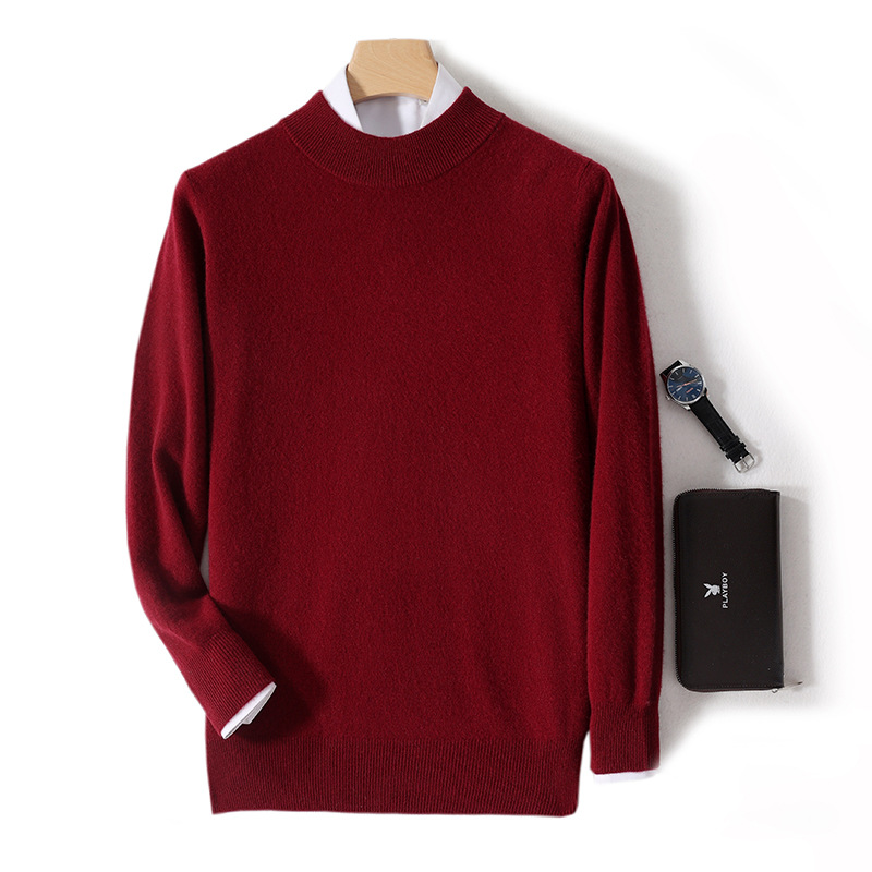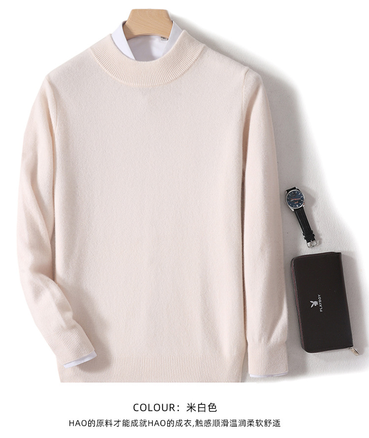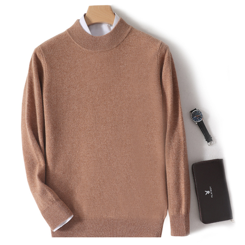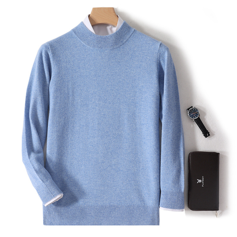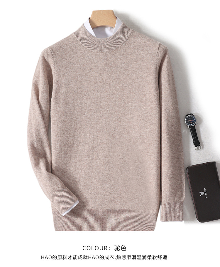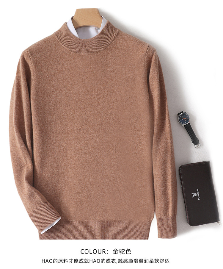 가을과 겨울 하프 터틀넥 울 스웨터 남성용 단색 풀오버 모든 경기 스웨터 비즈니스 캐주얼 캐시미어 니트 베이스 셔츠