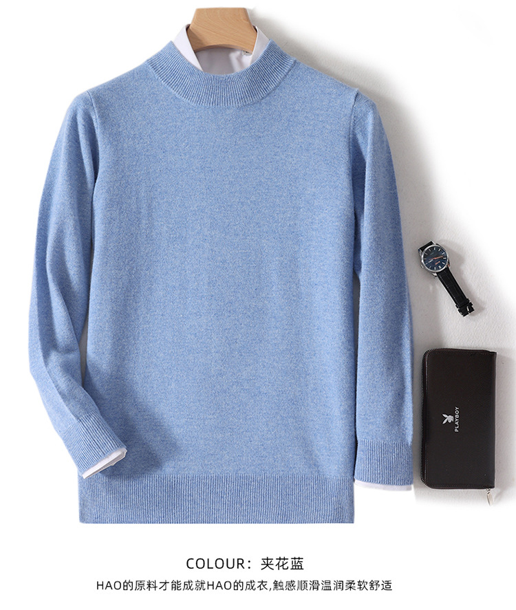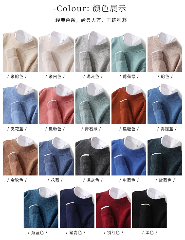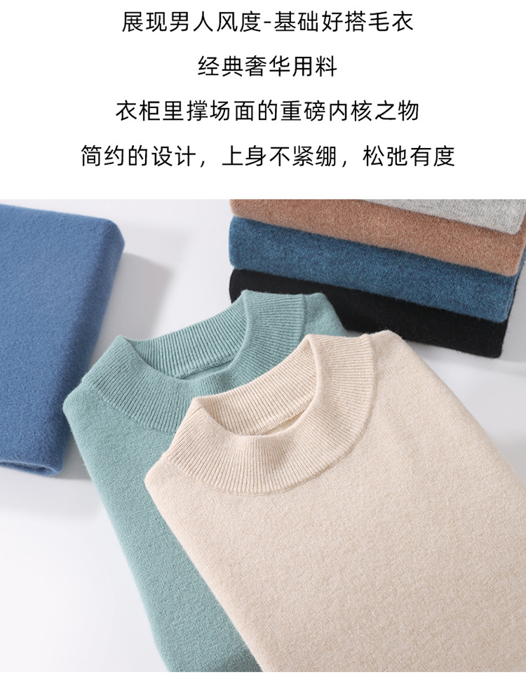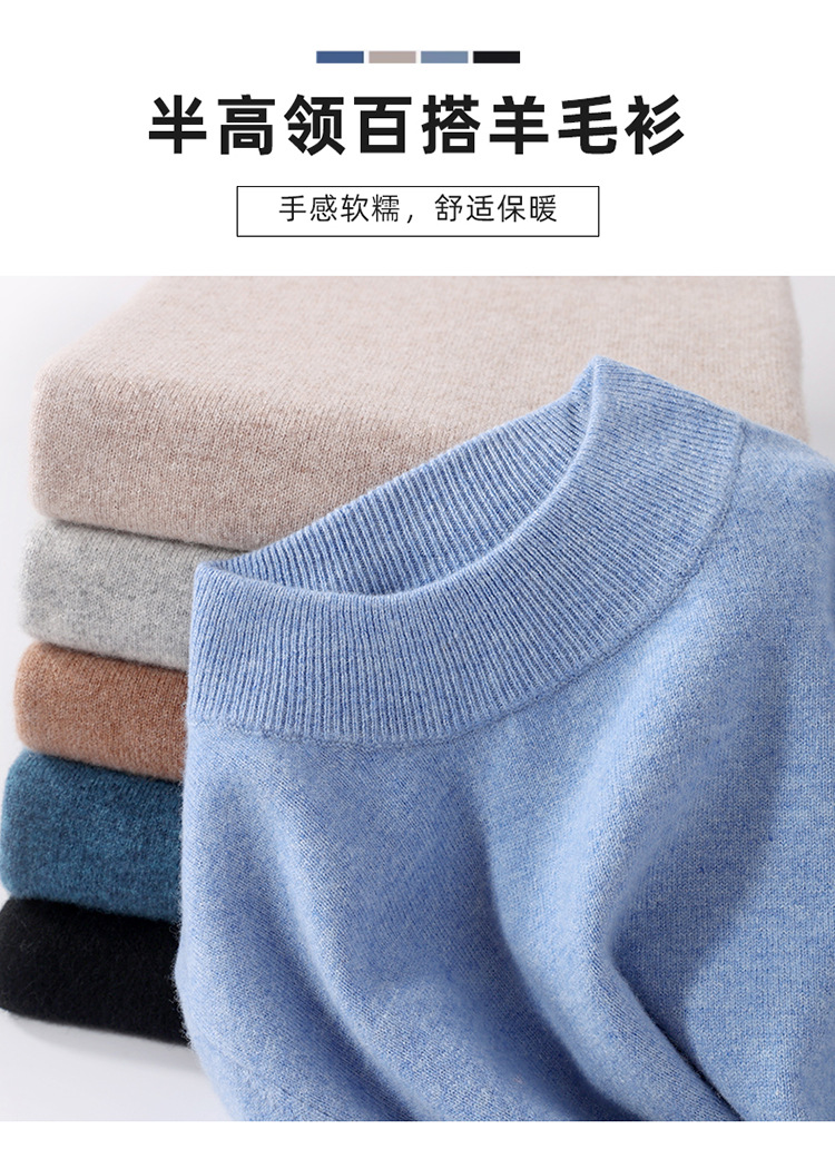 가을과 겨울 하프 터틀넥 울 스웨터 남성용 단색 풀오버 모든 경기 스웨터 비즈니스 캐주얼 캐시미어 니트 베이스 셔츠스토어 가기