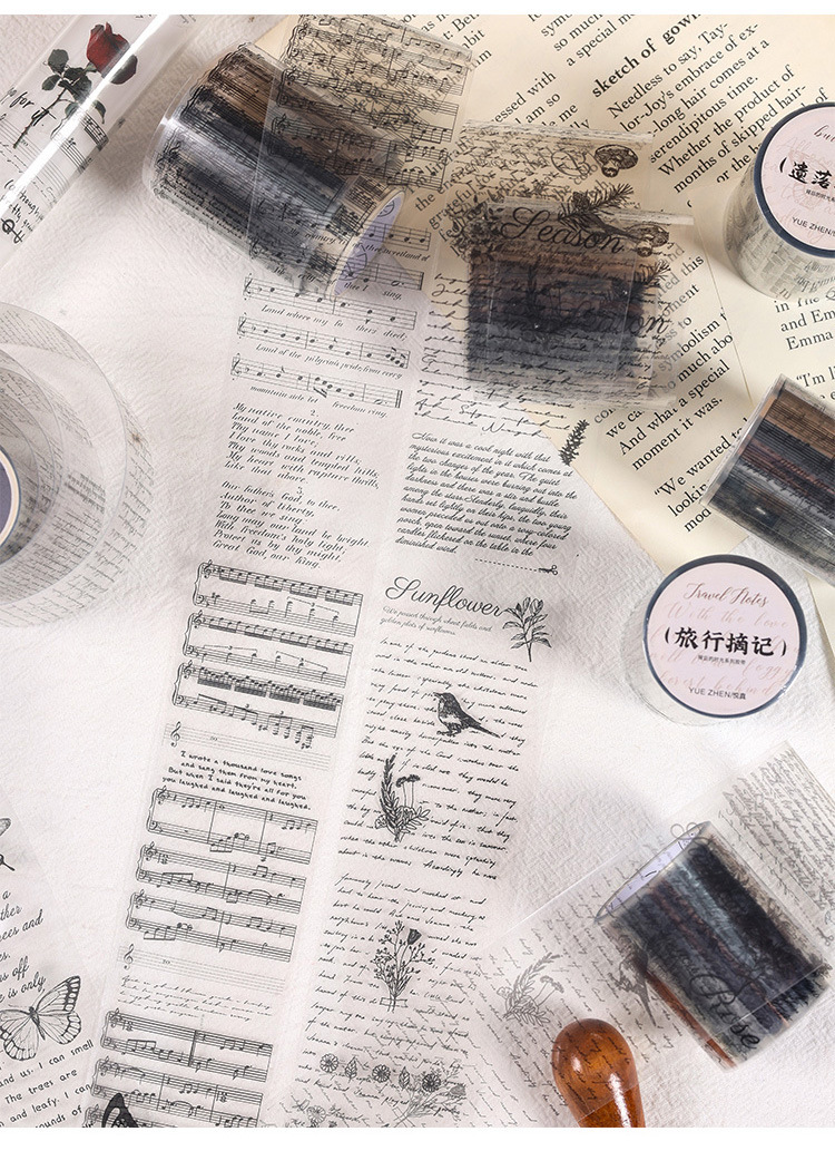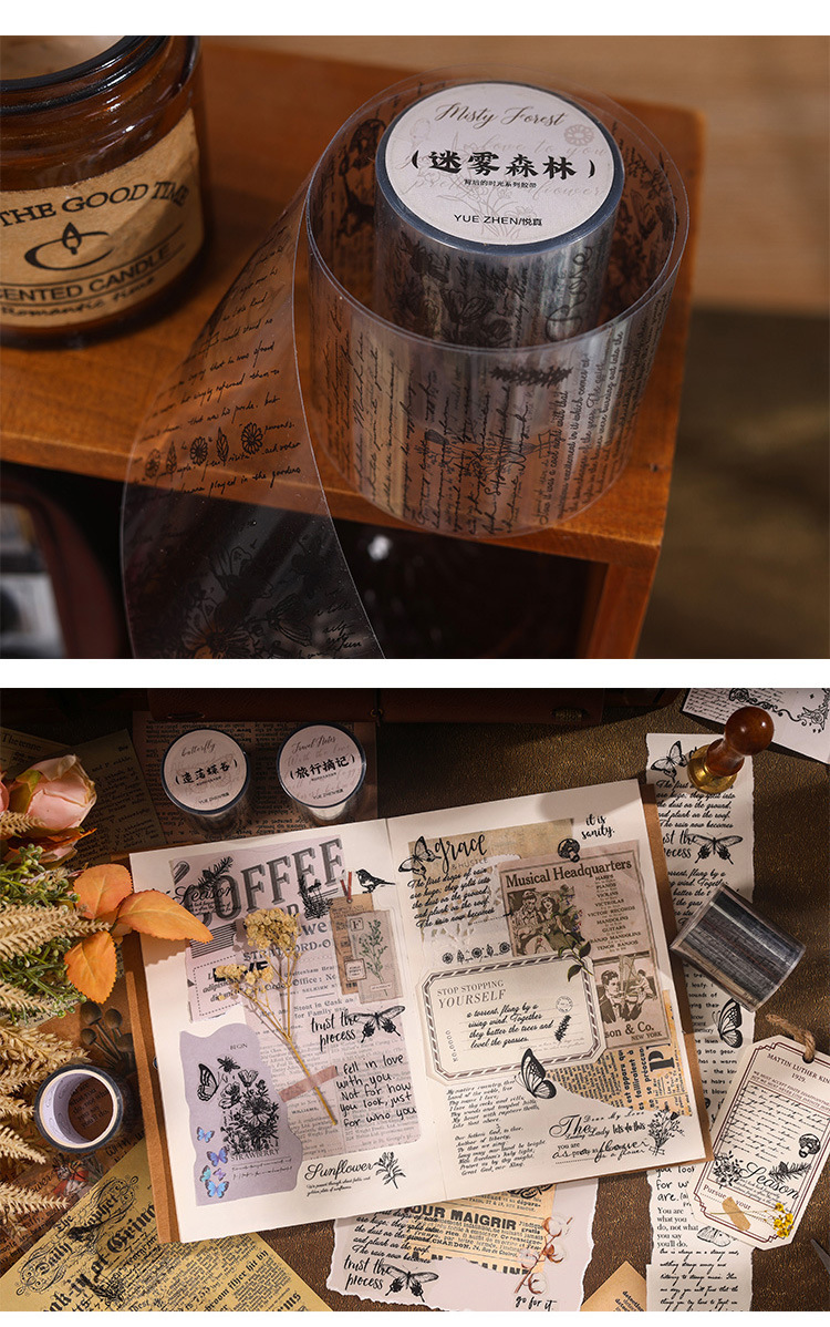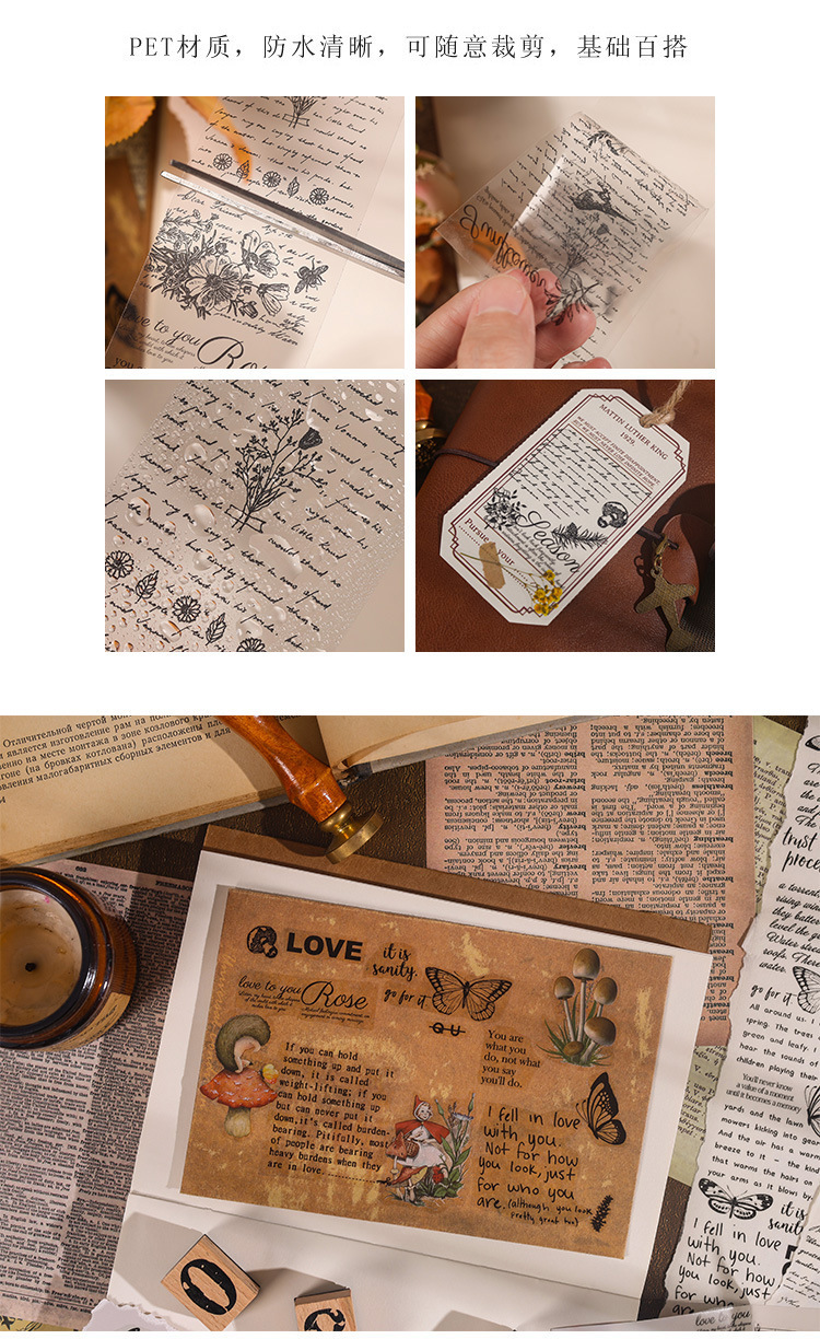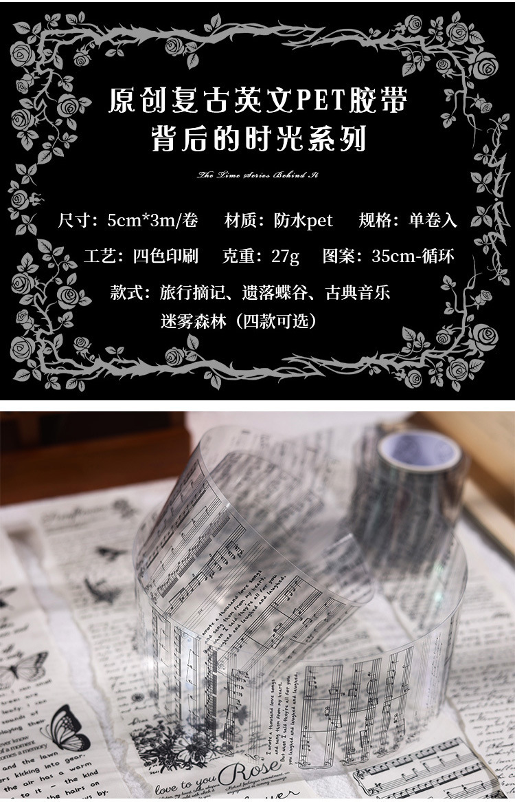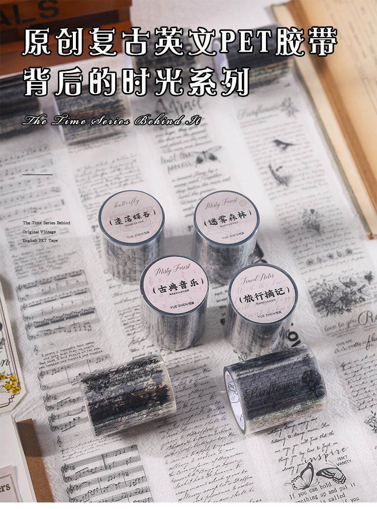 시간 시리즈 뒤에 복고풍 영어 PET 테이프 어린이 손 계정 투명 스티커 장식 재료 DIY 스티커
