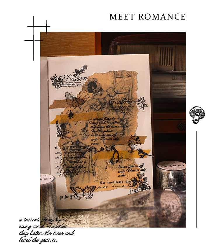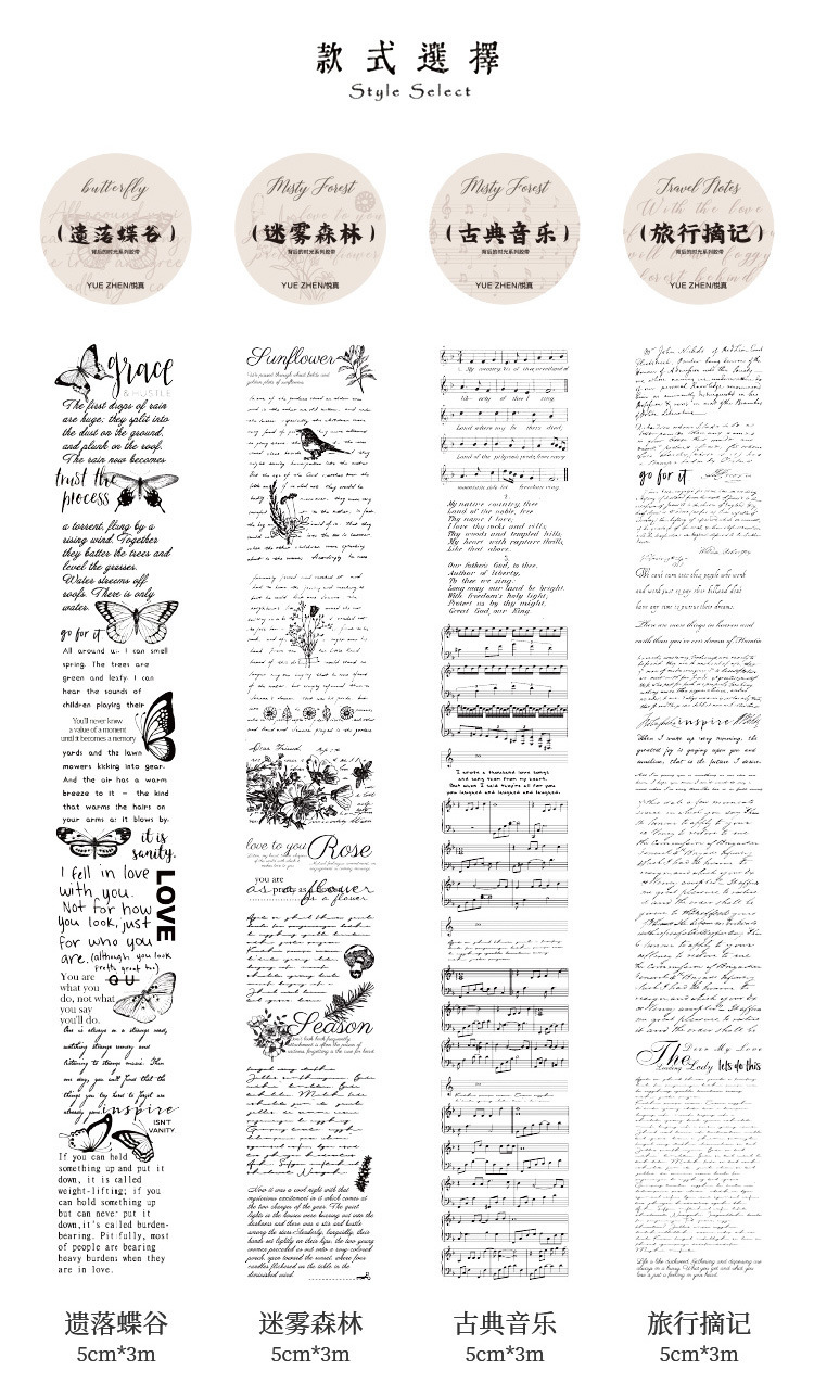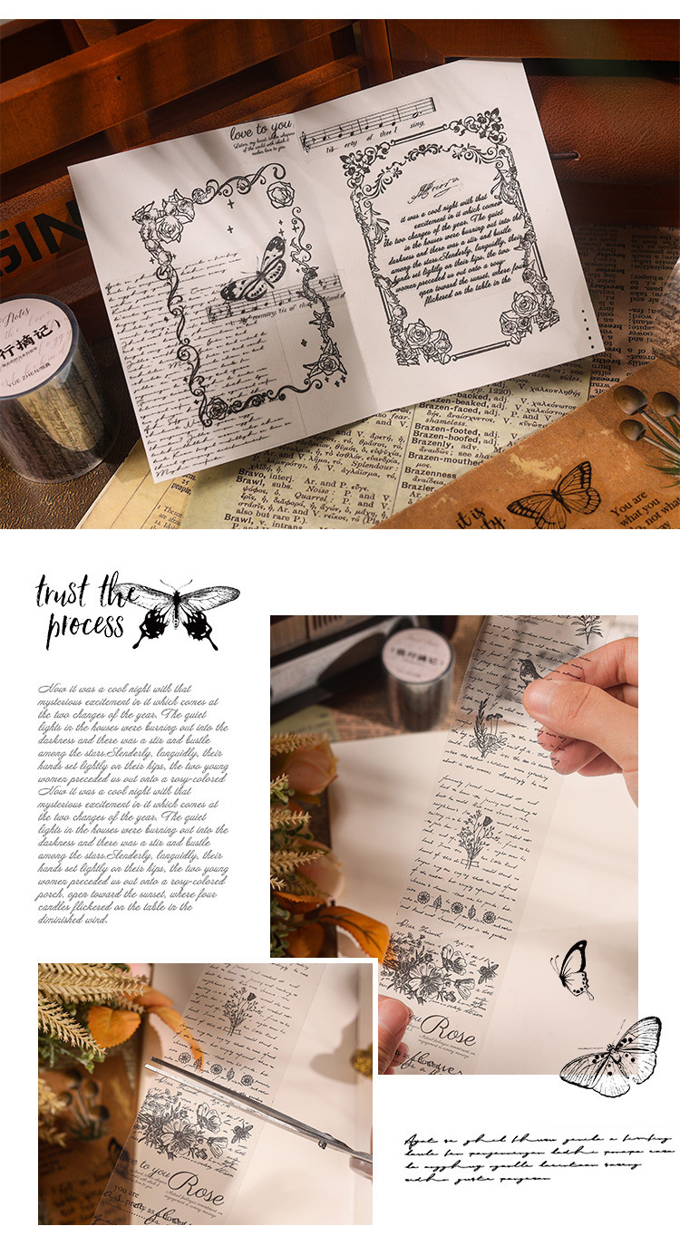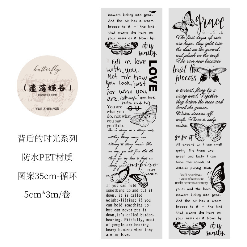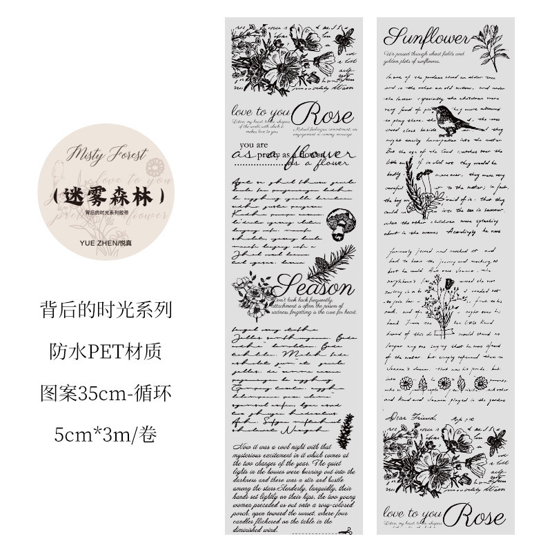 시간 시리즈 뒤에 복고풍 영어 PET 테이프 어린이 손 계정 투명 스티커 장식 재료 DIY 스티커