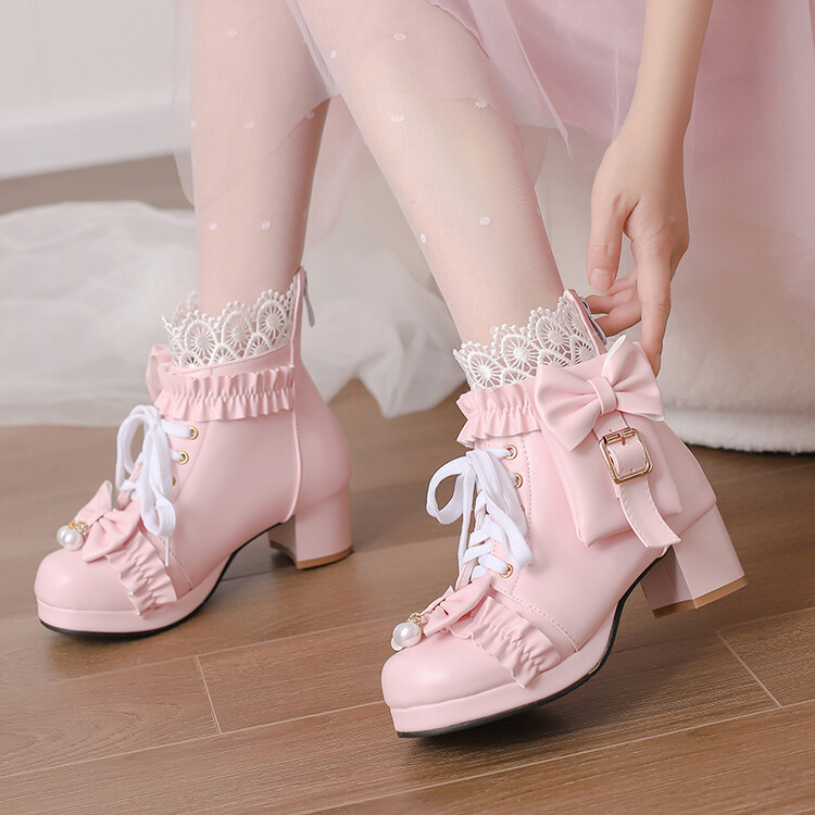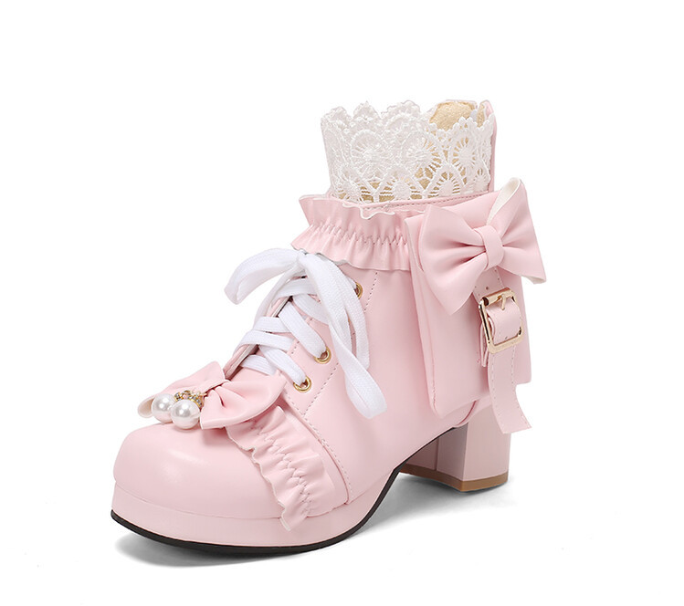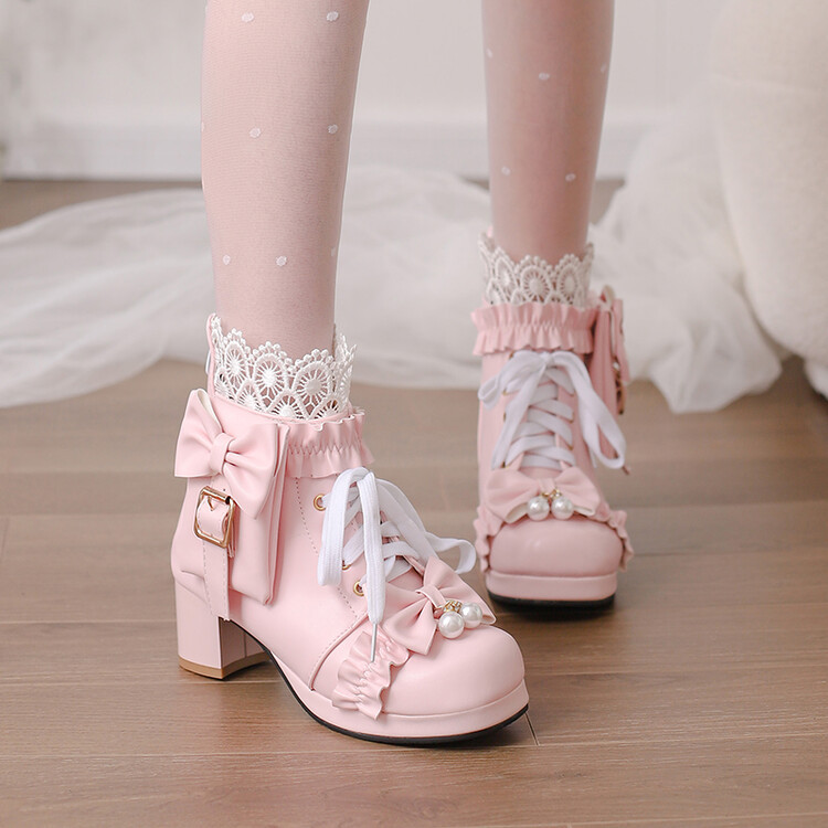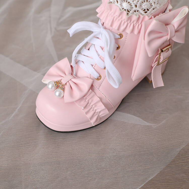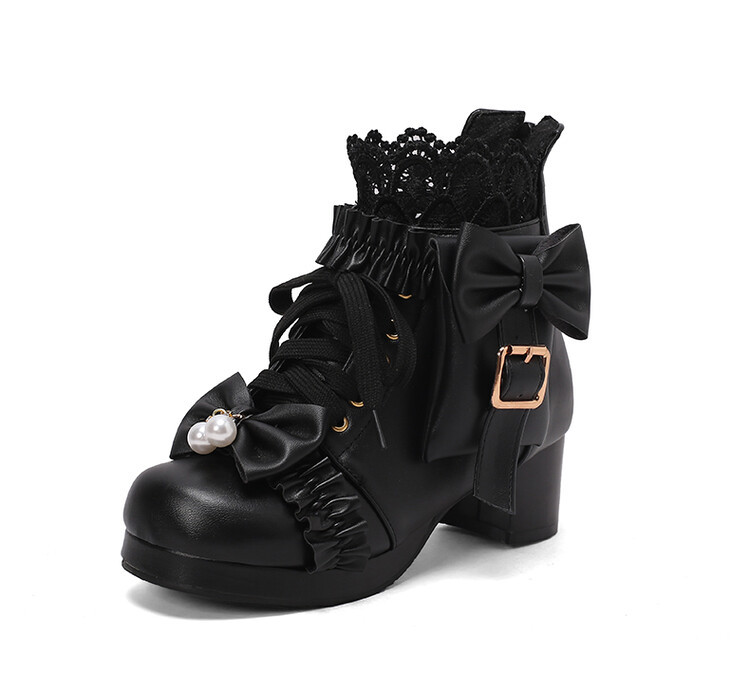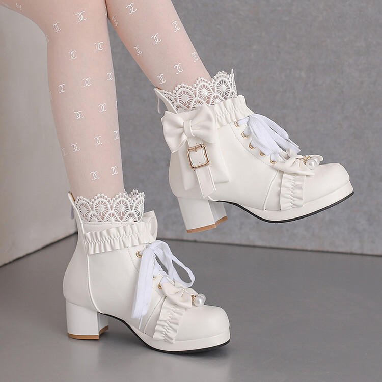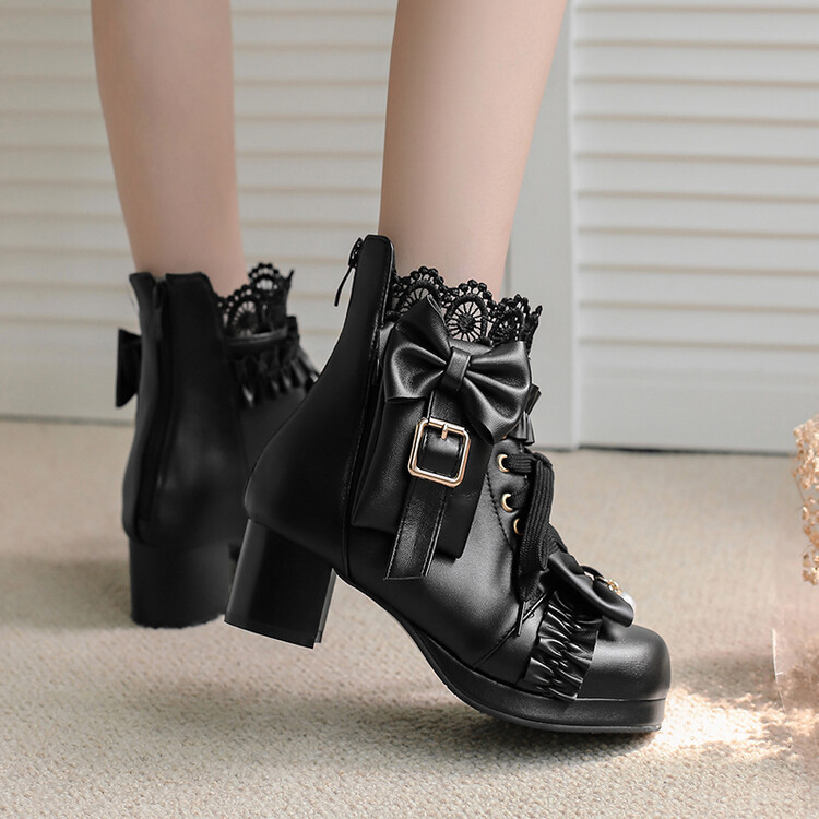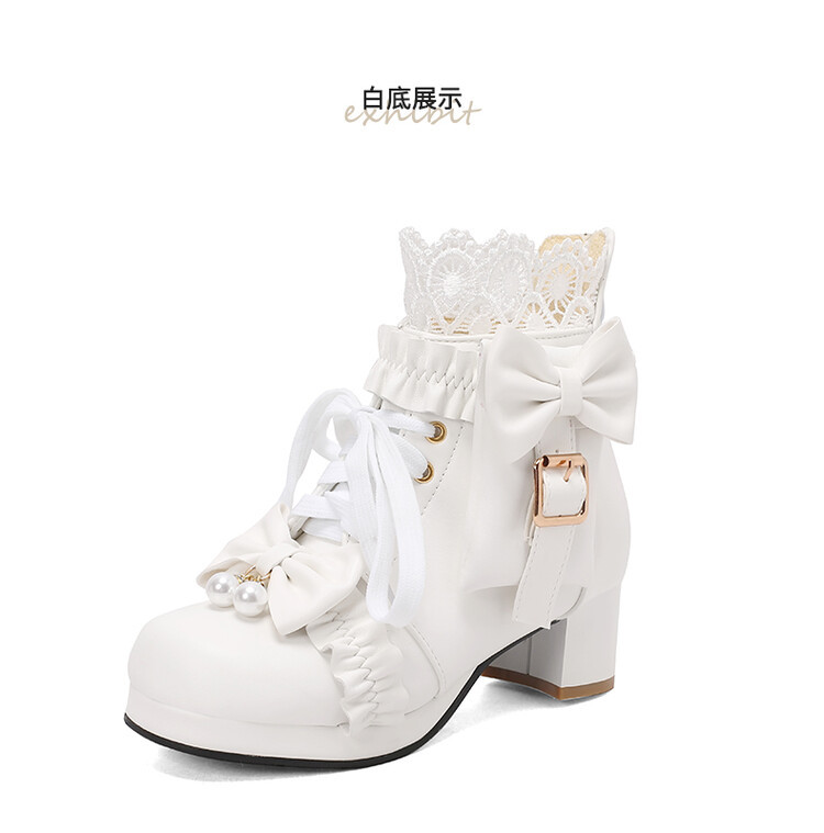 2023 칼리지 활 주름 레이스 벨트 버클 청키 힐 둥근 발가락 마틴 부츠 28-43 사이즈