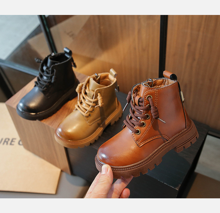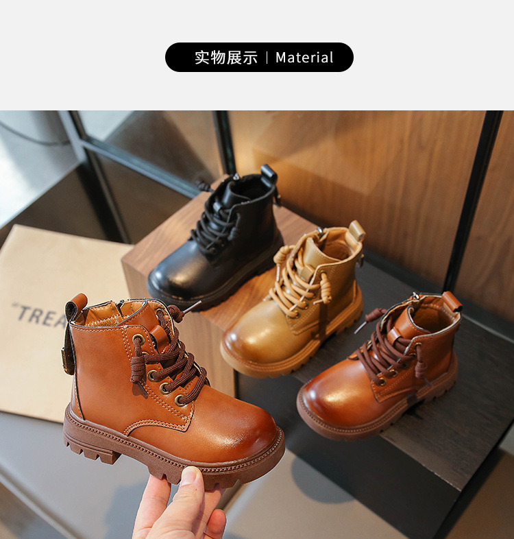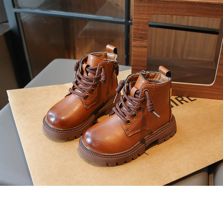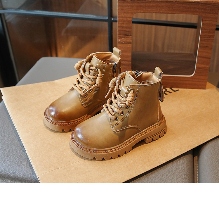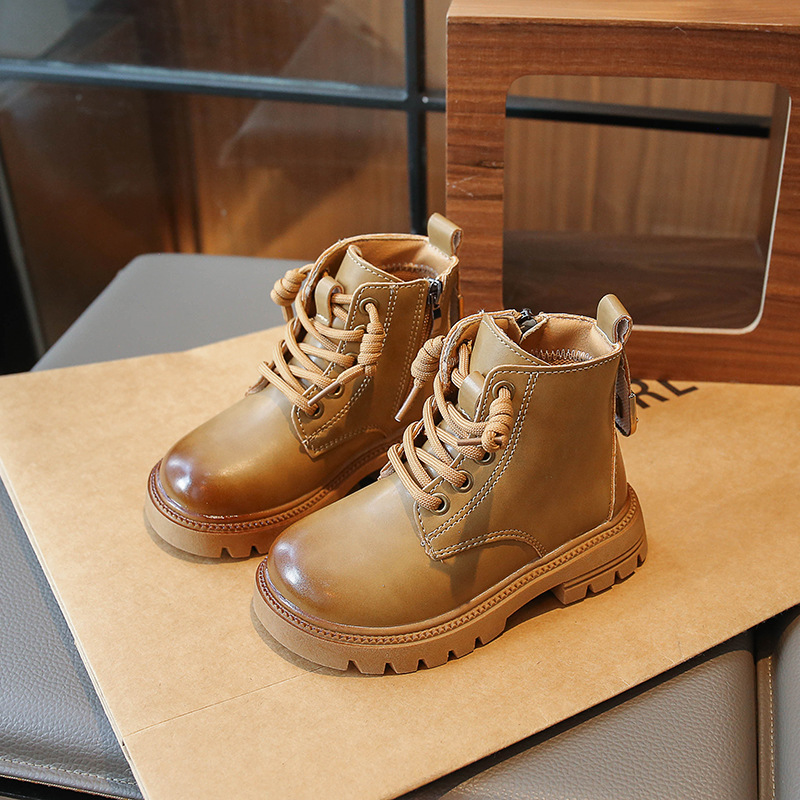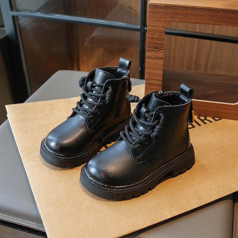 어린이 2023 봄과 가을 새로운 부츠 중형 및 대형 어린이 부드러운 밑창 경량 스프레이 페인트 소녀 마틴 부츠 복고풍 스타일 가죽 부츠