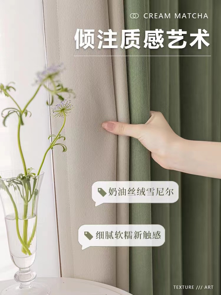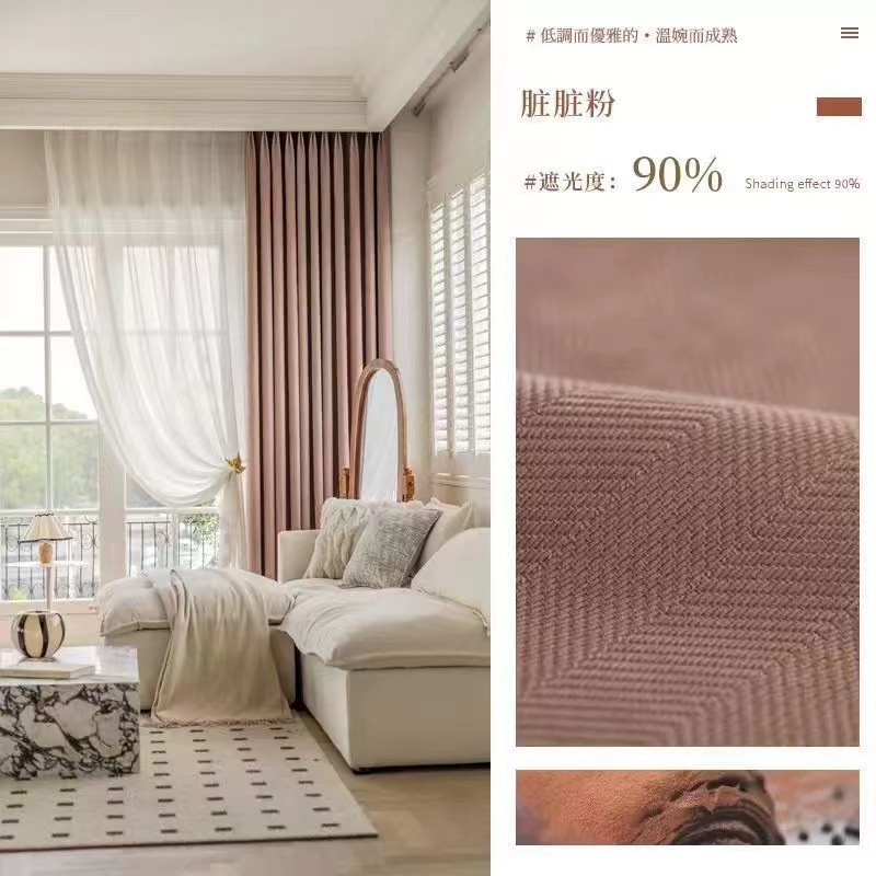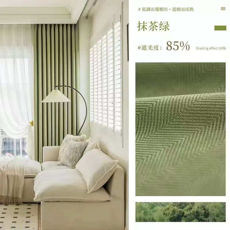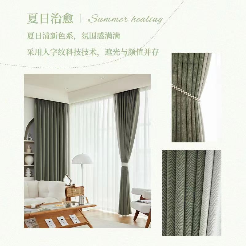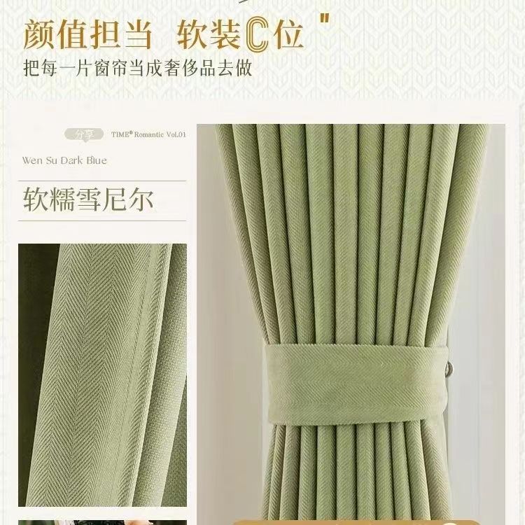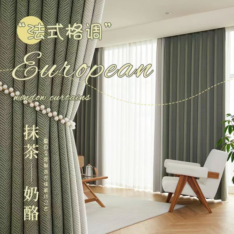 셔닐 프랑스 스타일 헤링본 패턴 침실 거실 차양 차양 빛 고급 일본 크림 벨벳 셔닐 천 커튼