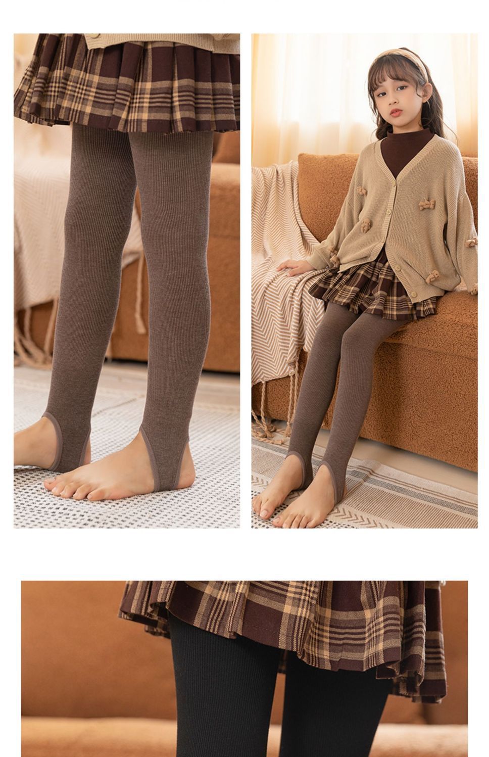 가을과 겨울 기모 두꺼운 겉옷을위한 여아 레깅스 원피스 벨벳 중형 및 대형 아동용 발 팬티 스타킹