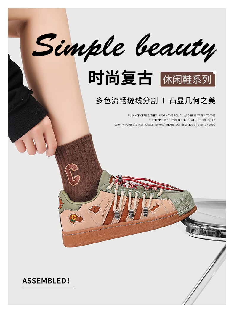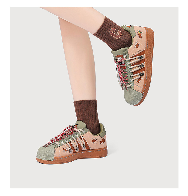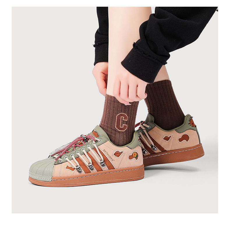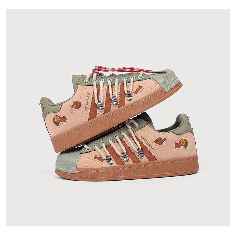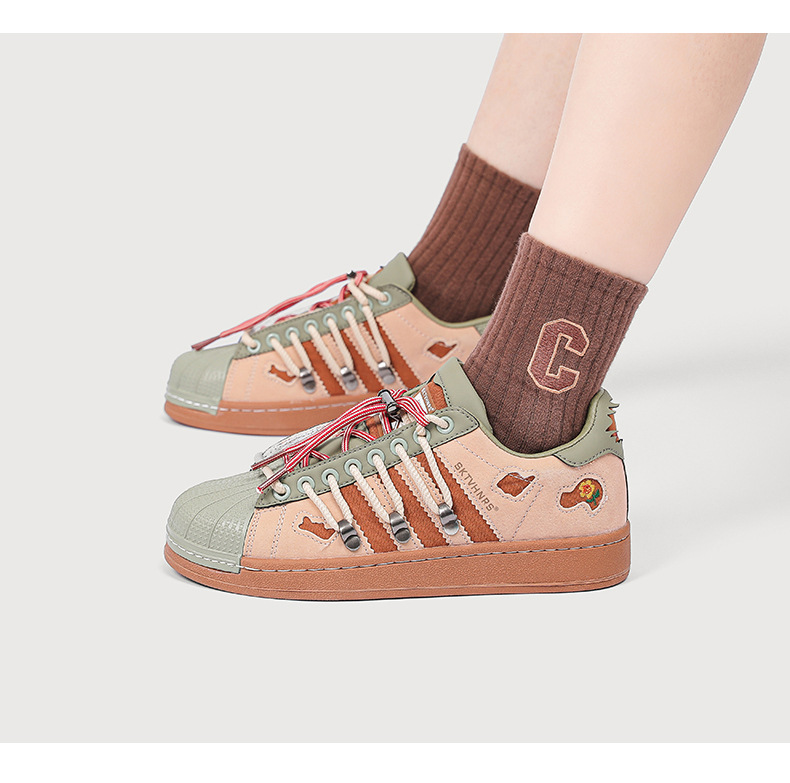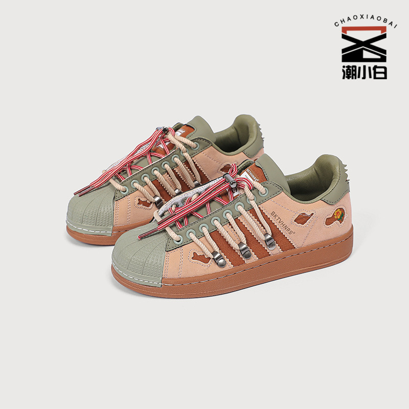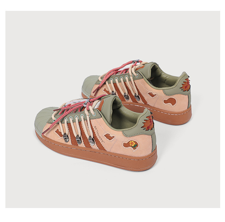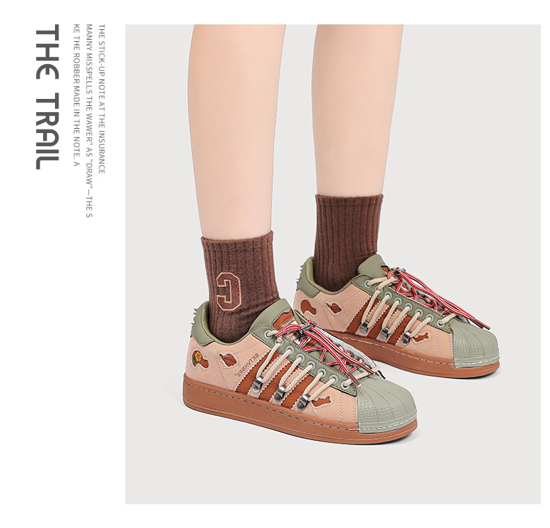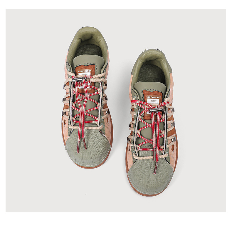 새로운 틈새 디자인 복고풍 토끼 구멍 더블 레이스 스니커즈 커플 쉘 발가락 캐주얼 로우 탑 고조 스니커즈스토어 가기