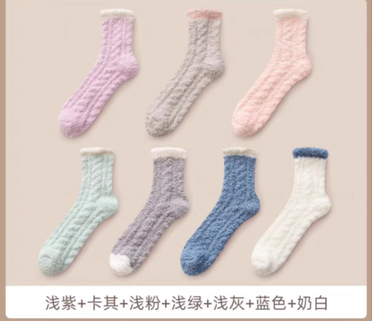 산호 양털 문 양말 여자의 산후 가을과 겨울 기모 두꺼운 면 양말 가정 수면 따뜻한 바닥 양말 봄과 가을
