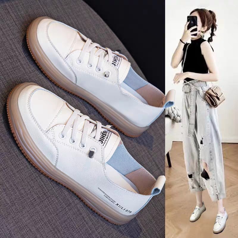 퍼스트 레이어 소가죽 화이트 슈즈 여성용 2023 년 새로운 여름 올매치 비프 솔 소프트 솔 슈즈 캐주얼 부드러운 가죽 어머니 신발스토어 가기