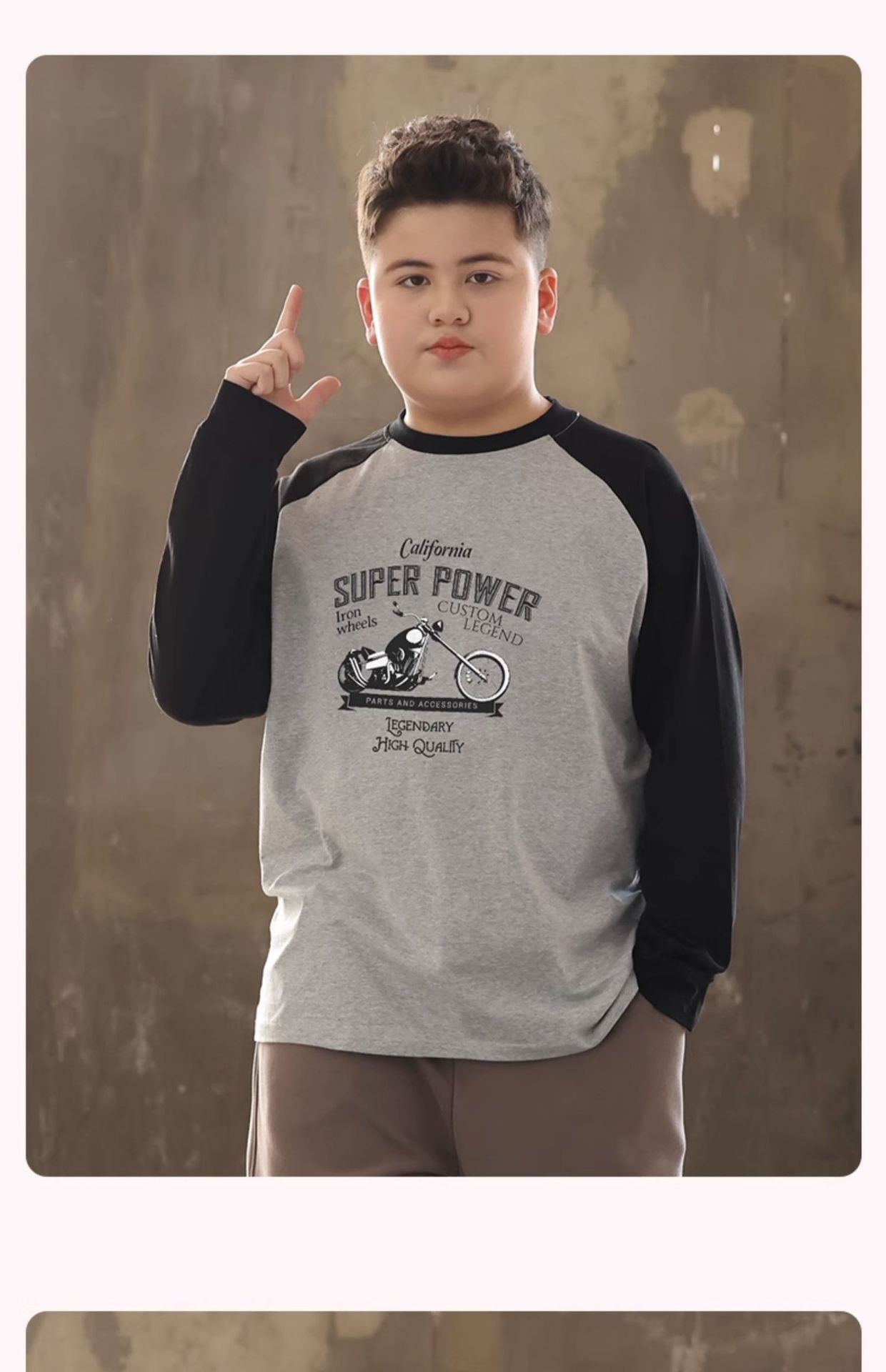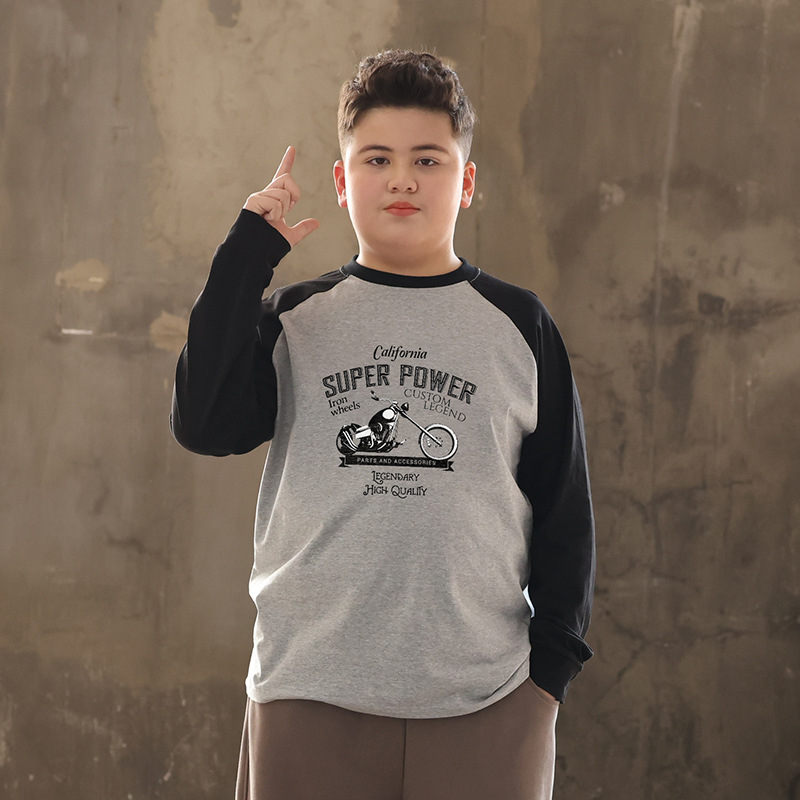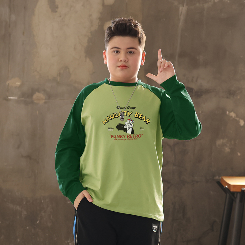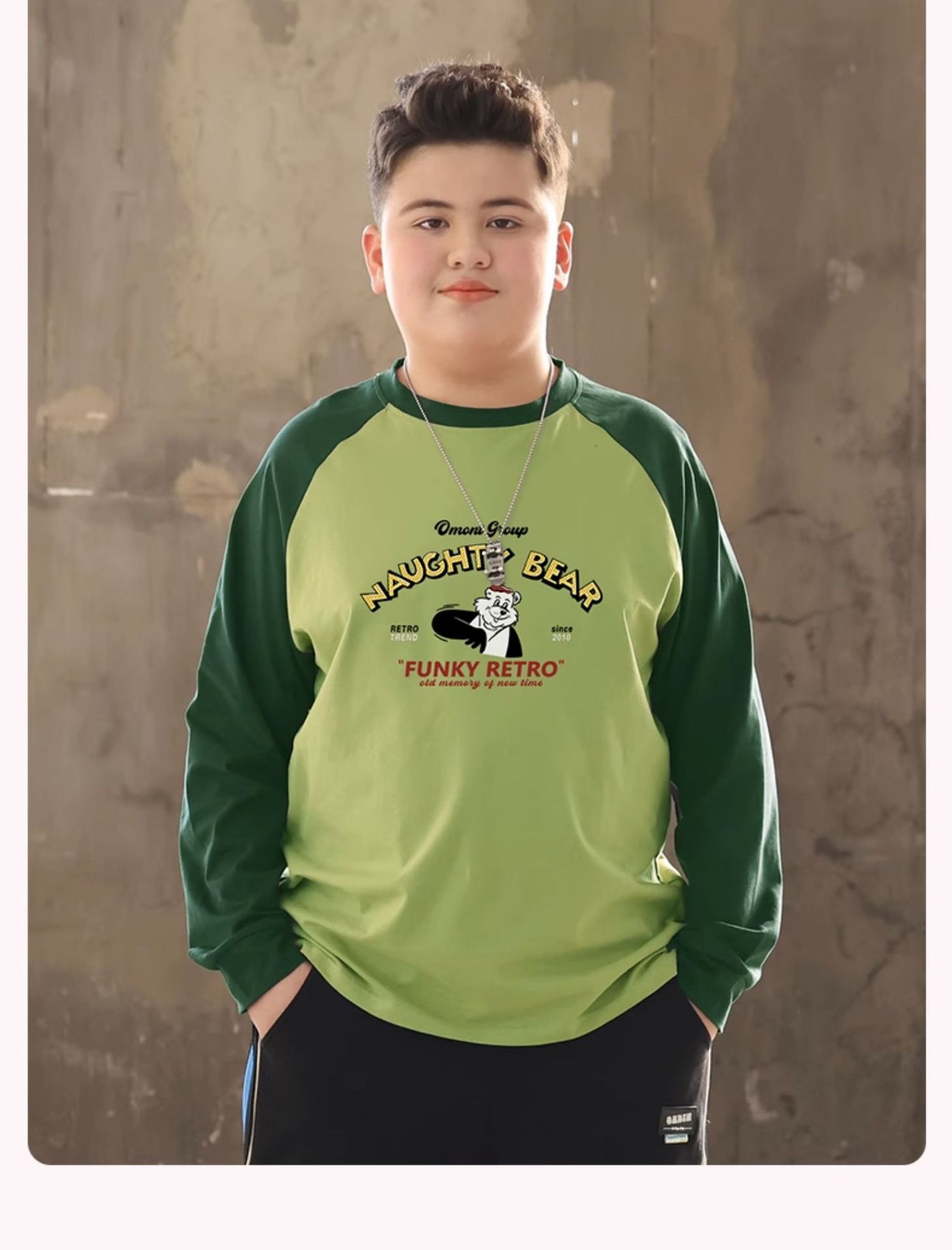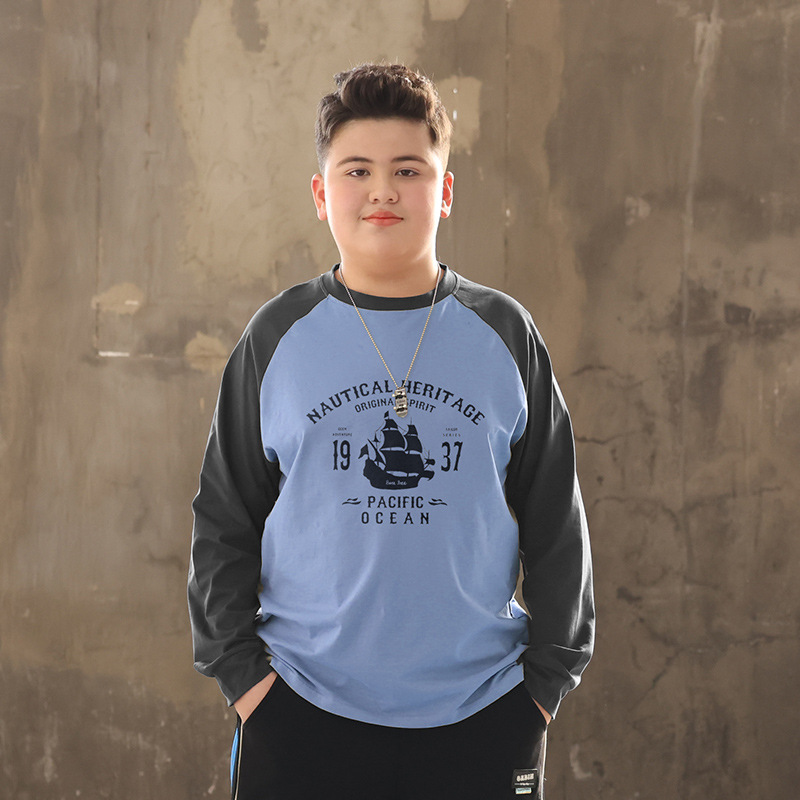 통통한 아동복 남아 티셔츠 레트로 컬러 매칭 라글란 슬리브 대형 어린이 플러스 사이즈 2023 가을 캐주얼 어린이 긴 소매스토어 가기