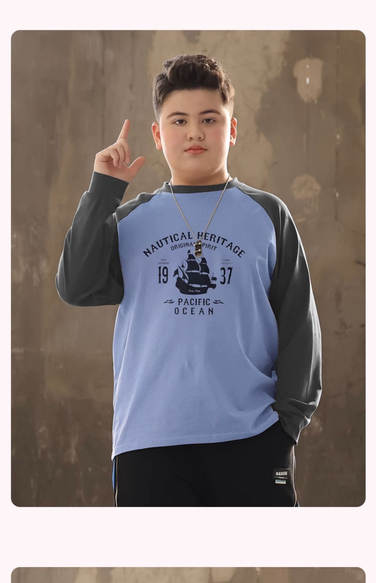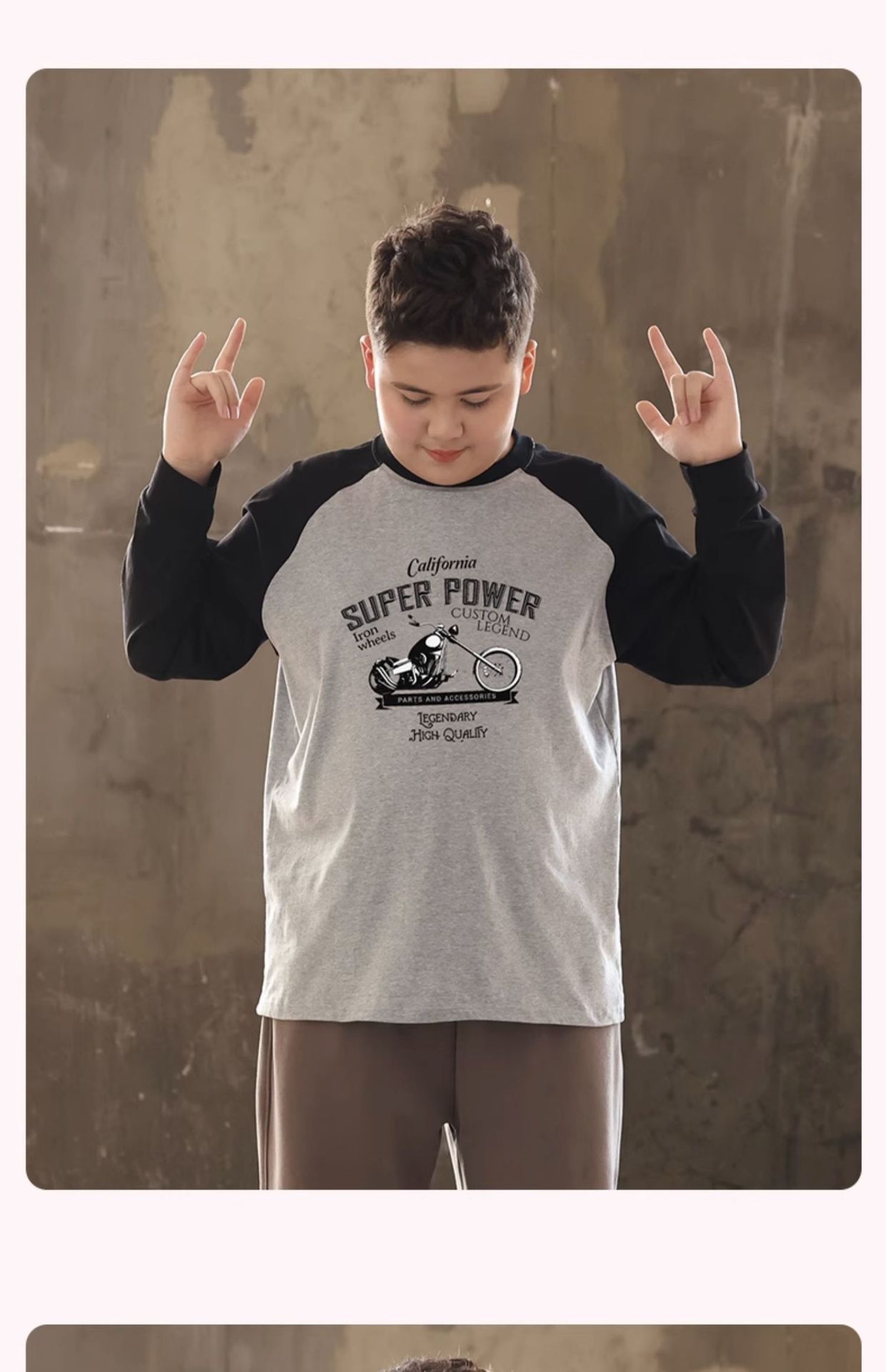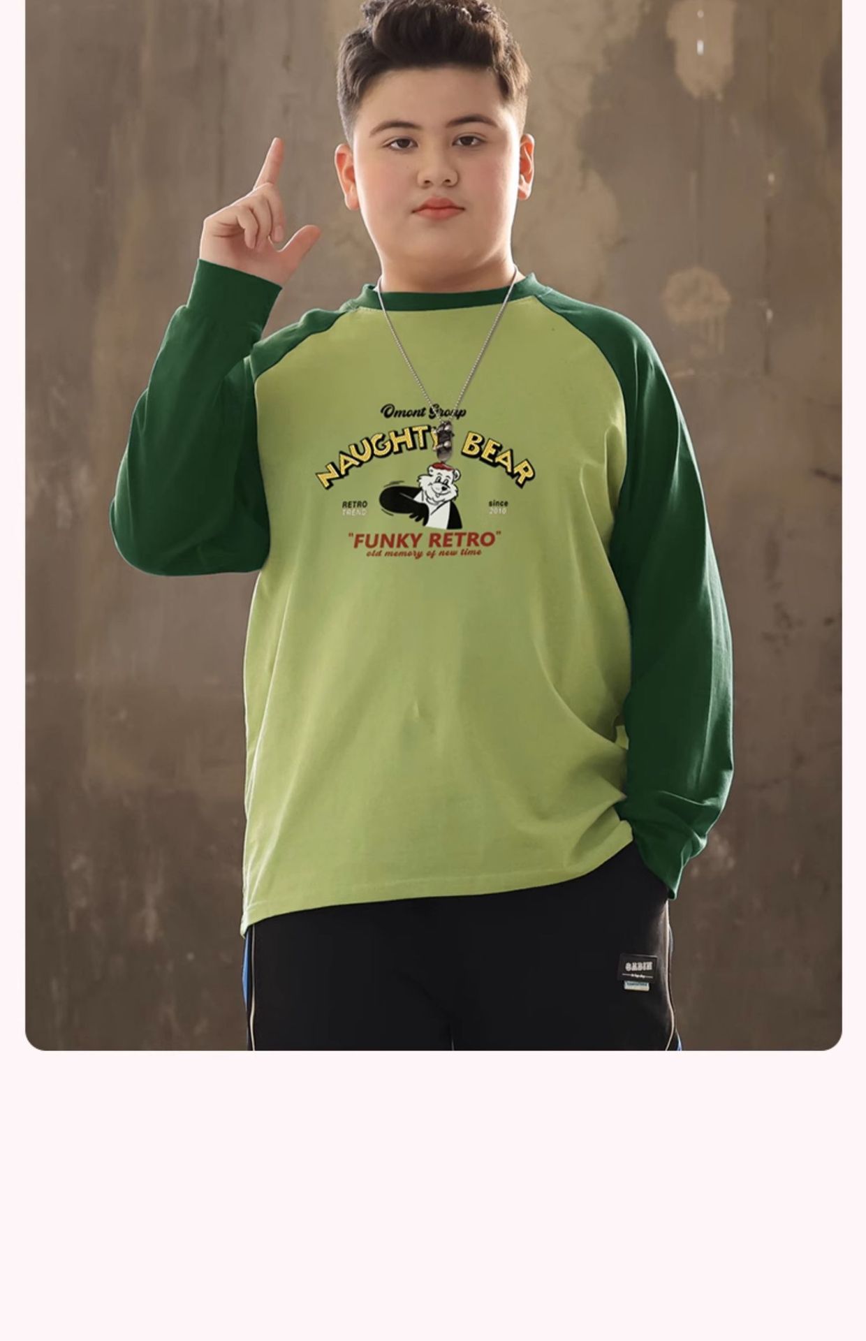 통통한 아동복 남아 티셔츠 레트로 컬러 매칭 라글란 슬리브 대형 어린이 플러스 사이즈 2023 가을 캐주얼 어린이 긴 소매스토어 가기