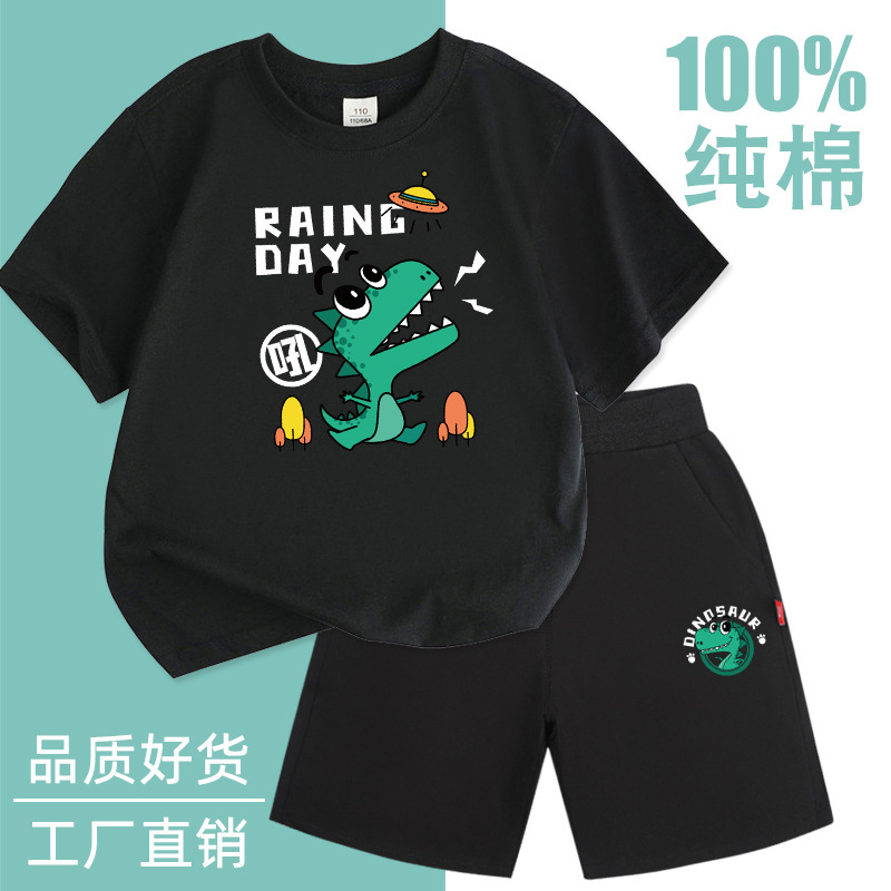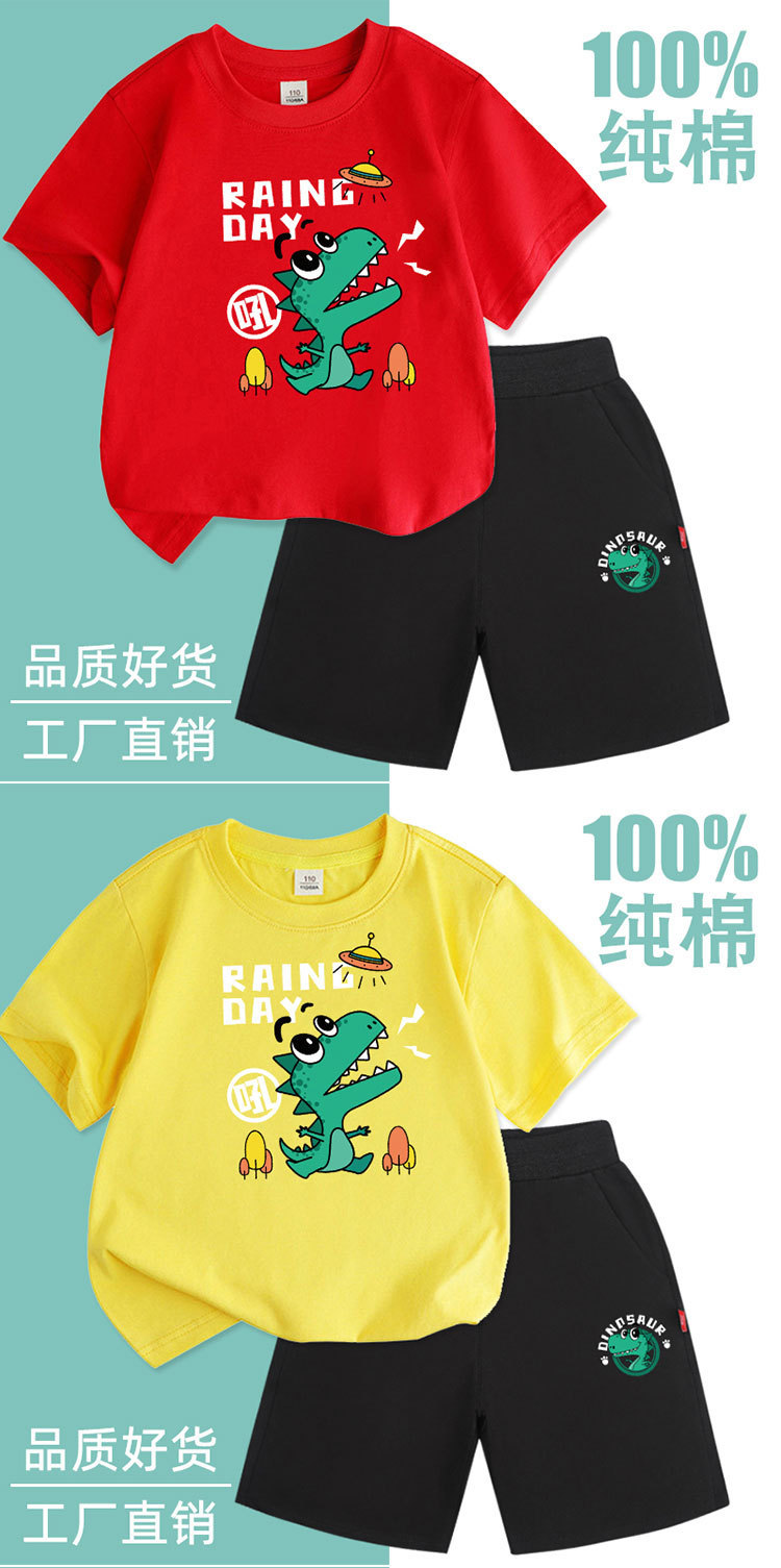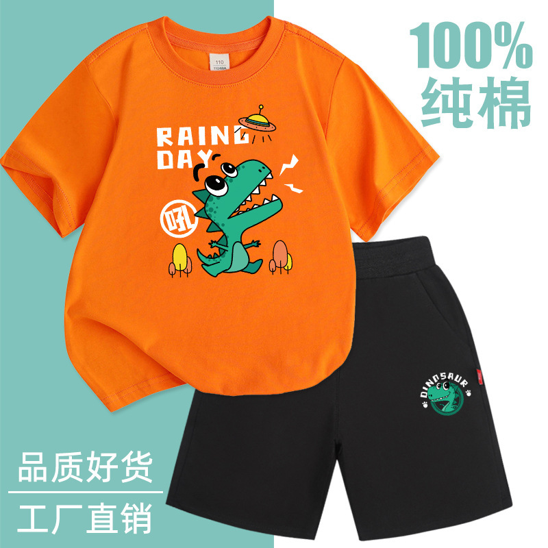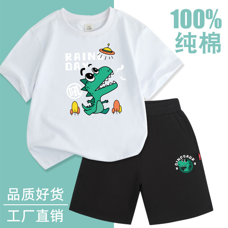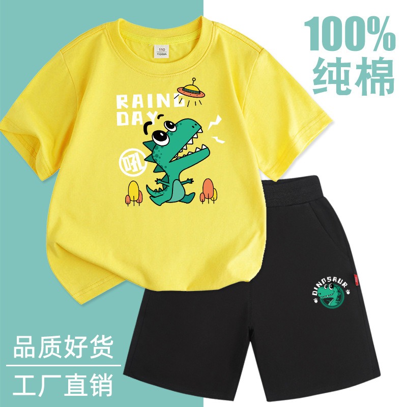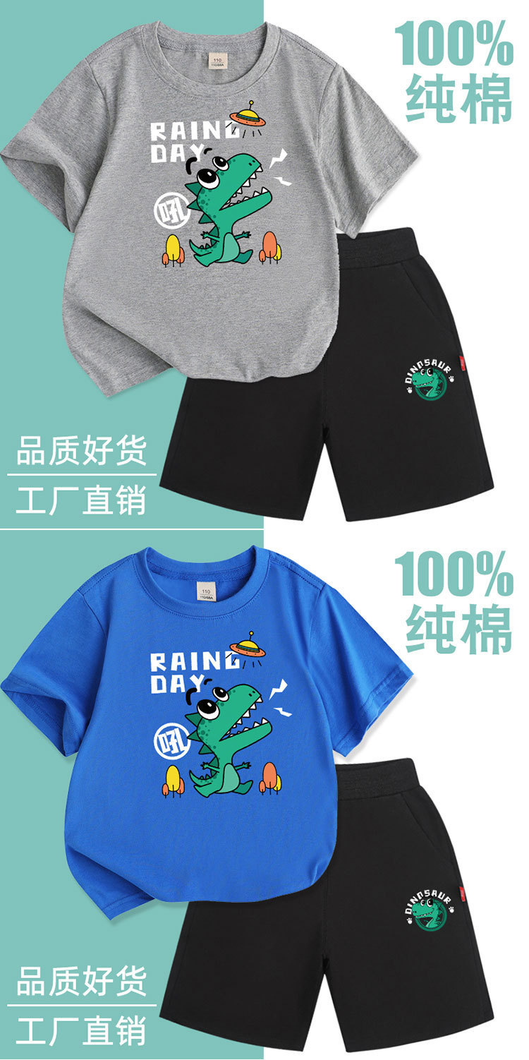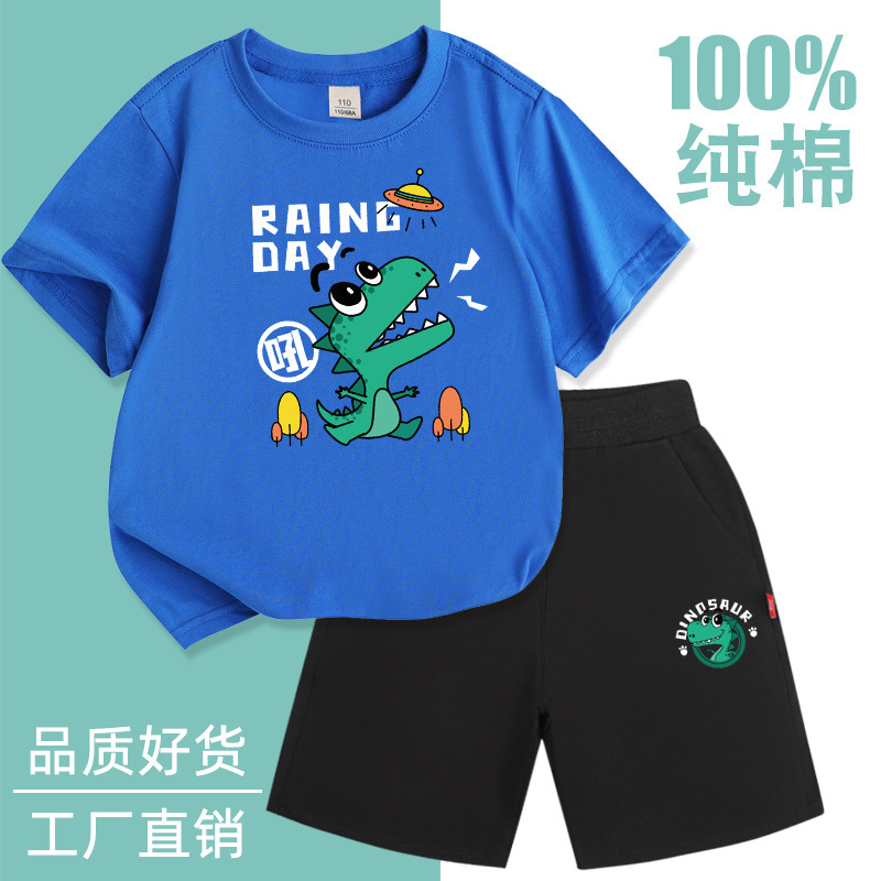 소년 여름 옷 세트 2023 새 소년 튀김 거리 서양식 여름 어린이 짧은 소매 면 투피스 얇은스토어 가기