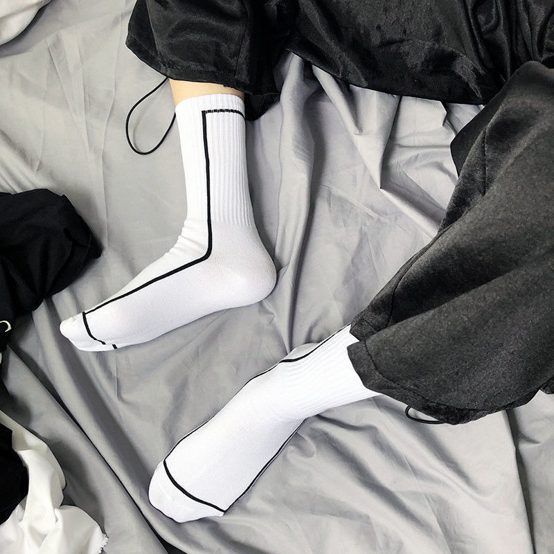 흑백 라인 스타킹 남녀 쿨 패션 학생 커플 한국 기계식 하라주쿠 스타일 스트리트 스포츠 통기성 올매치스토어 가기