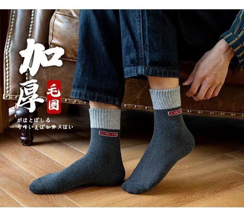 남성과 여성을위한 수건 양말 기모 플러스 테리 양말 두꺼운 겨울 튜브 따뜻한 남성 스타킹 탈취제 조수 한국 도매스토어 가기