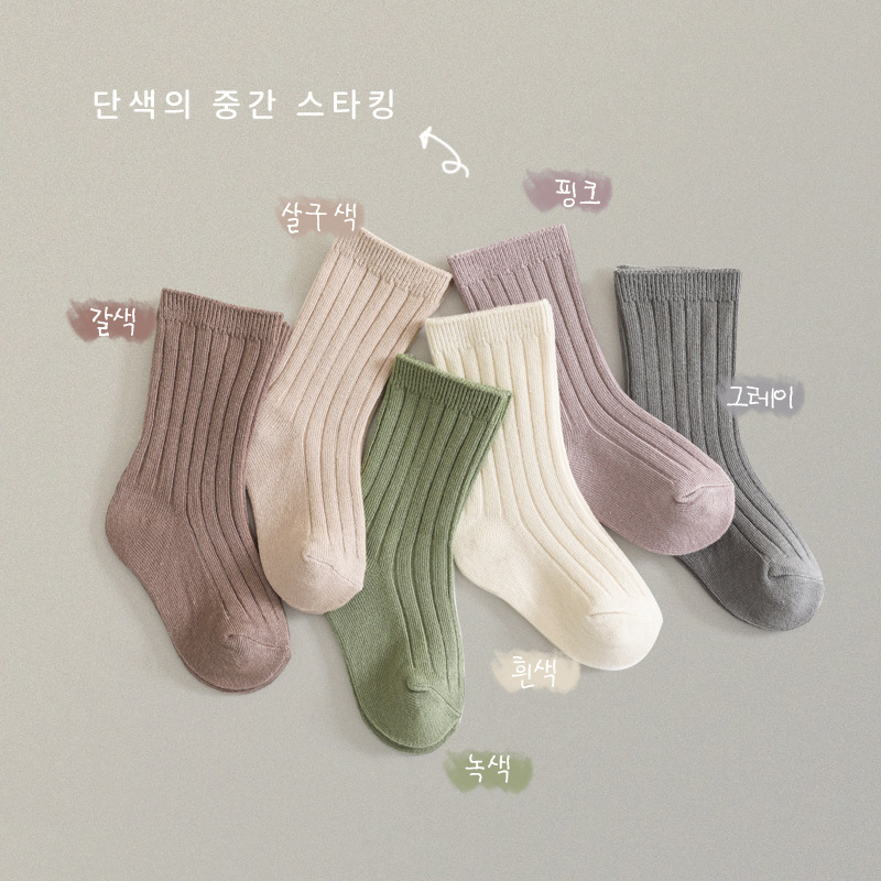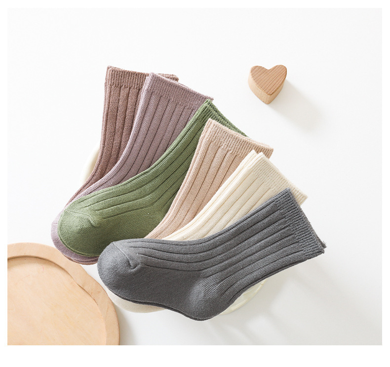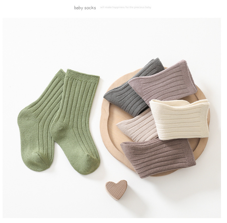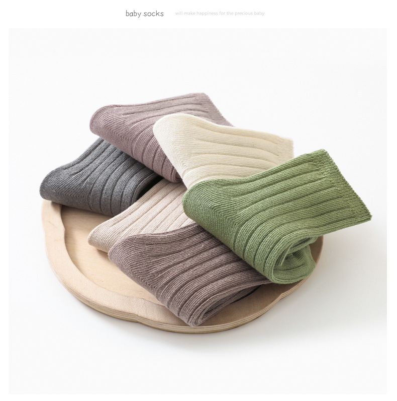 어린이 가을과 겨울 새로운 일본식 단색 중간 길이 양말 소년과 소녀를위한 모든 매치 더블 바늘 면 양말 아기 클래스 A 느슨한 양말