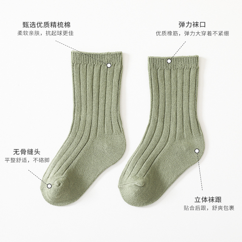 어린이 가을과 겨울 새로운 일본식 단색 중간 길이 양말 소년과 소녀를위한 모든 매치 더블 바늘 면 양말 아기 클래스 A 느슨한 양말스토어 가기