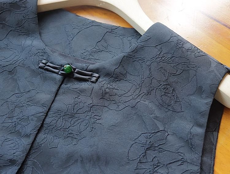 새로운 중국 스타일 조끼 여자의 2023 여름 새로운 라운드 넥 민소매 복고풍 국가 스타일 자카드 조끼 블랙 탑