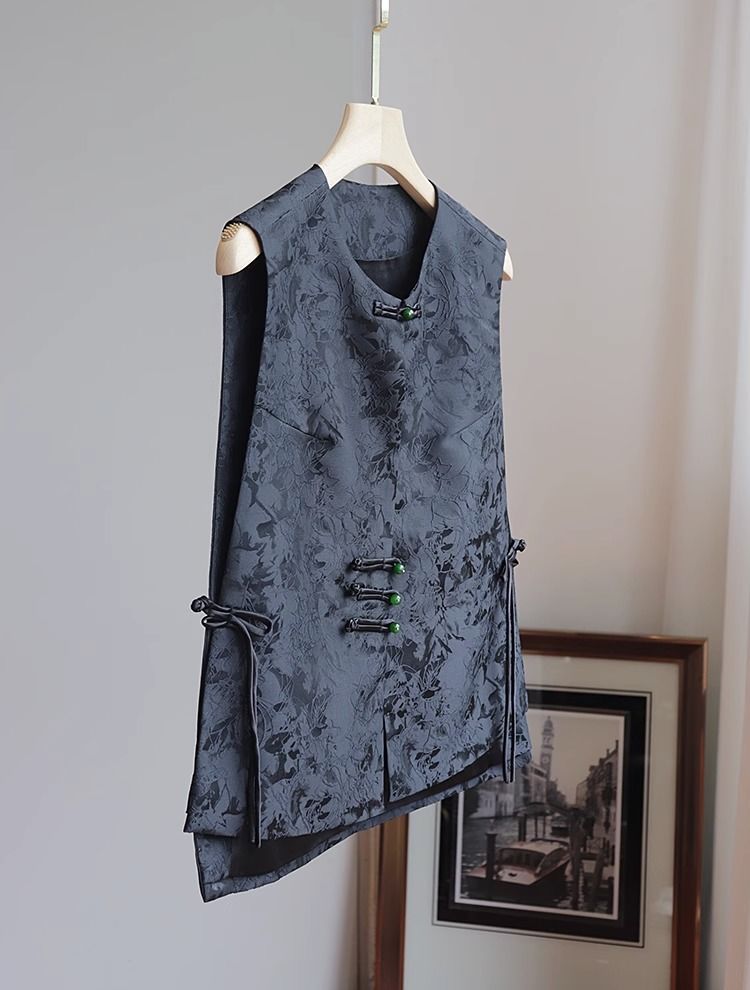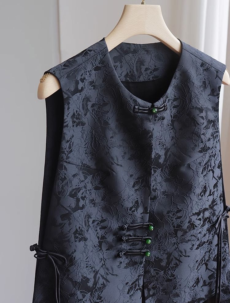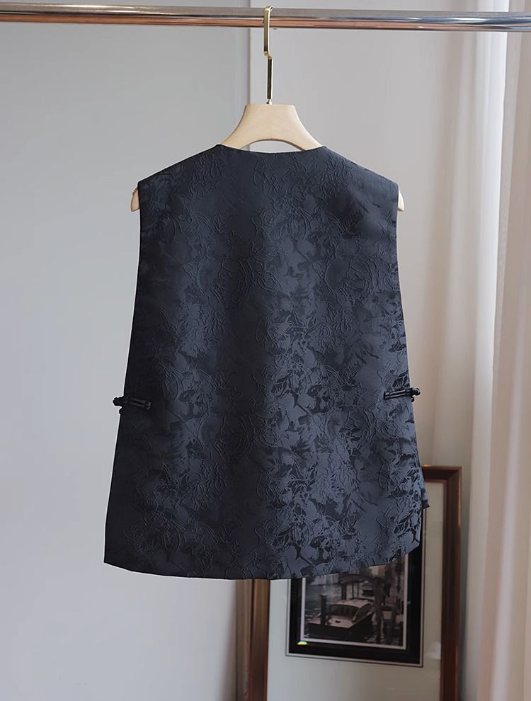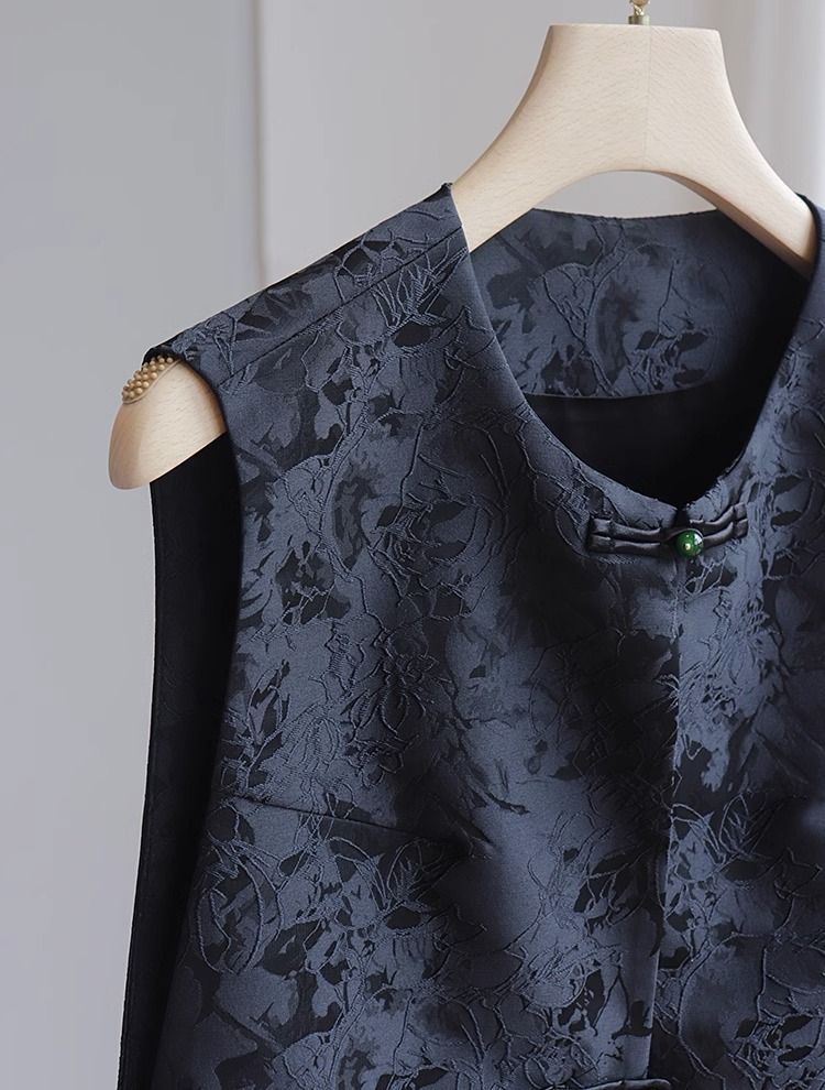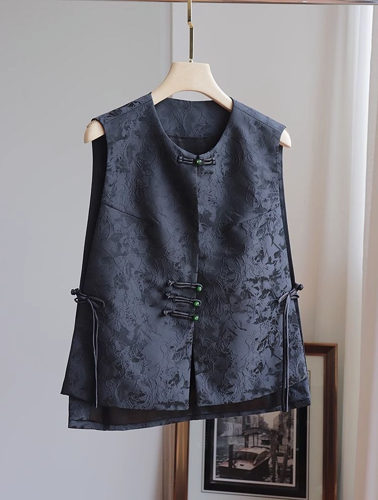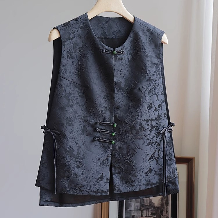 새로운 중국 스타일 조끼 여자의 2023 여름 새로운 라운드 넥 민소매 복고풍 국가 스타일 자카드 조끼 블랙 탑스토어 가기