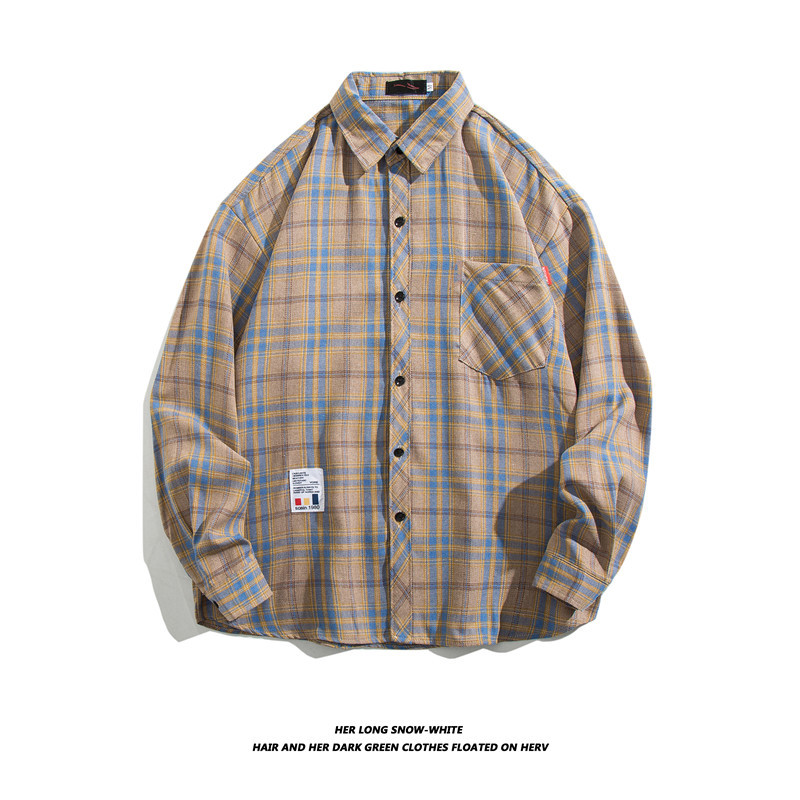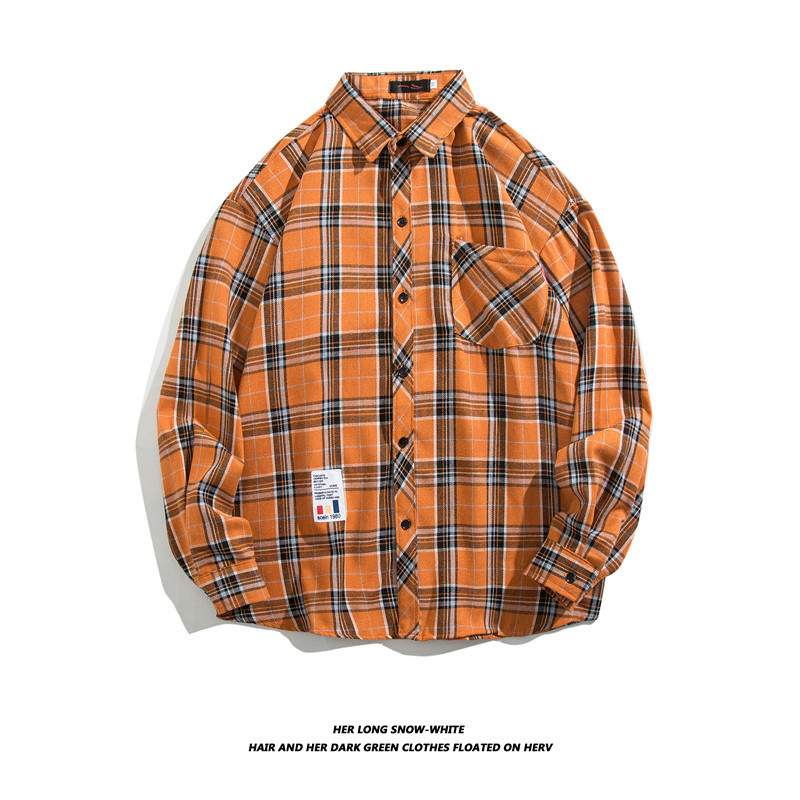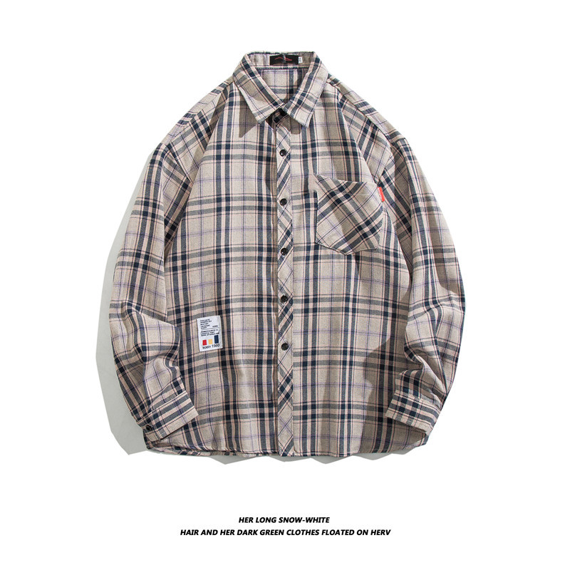 긴팔 셔츠 남성 셔츠 가을과 겨울 한국 패션 잘 생긴 흑백 격자 무늬 홍콩 스타일 일본어 2023 New스토어 가기