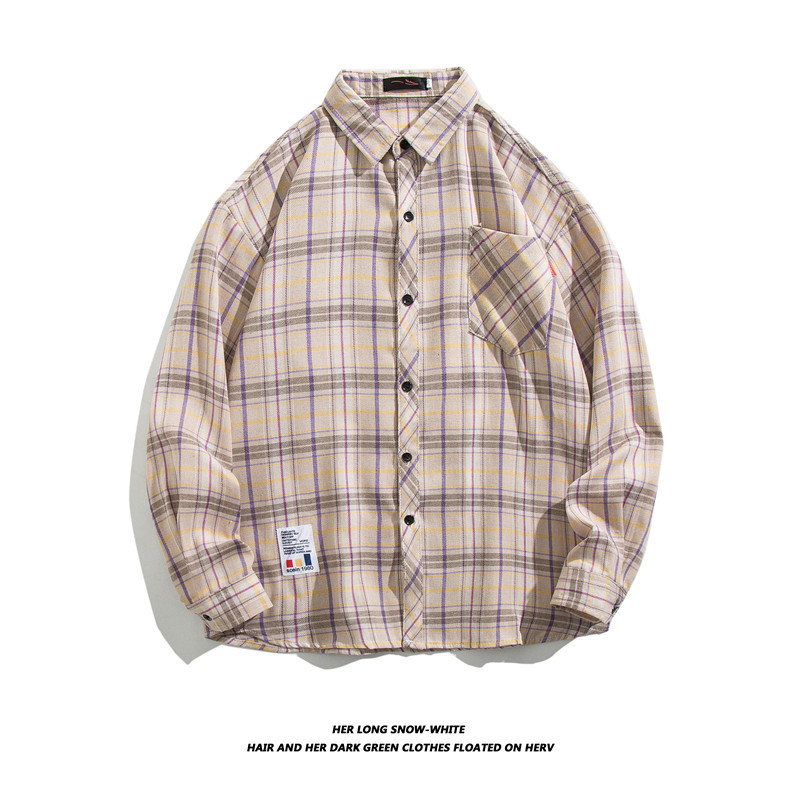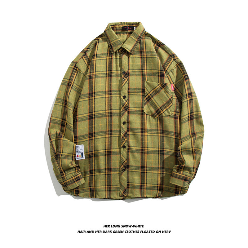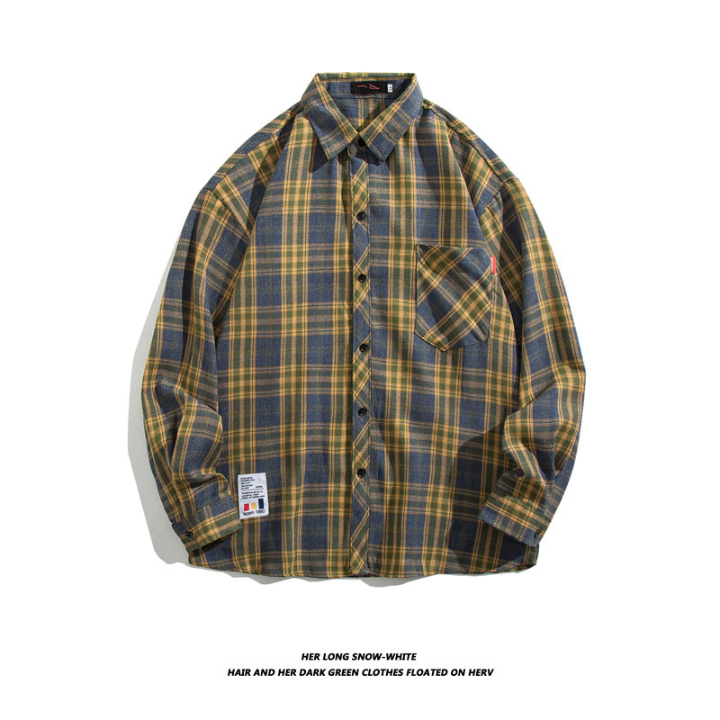 긴팔 셔츠 남성 셔츠 가을과 겨울 한국 패션 잘 생긴 흑백 격자 무늬 홍콩 스타일 일본어 2023 New