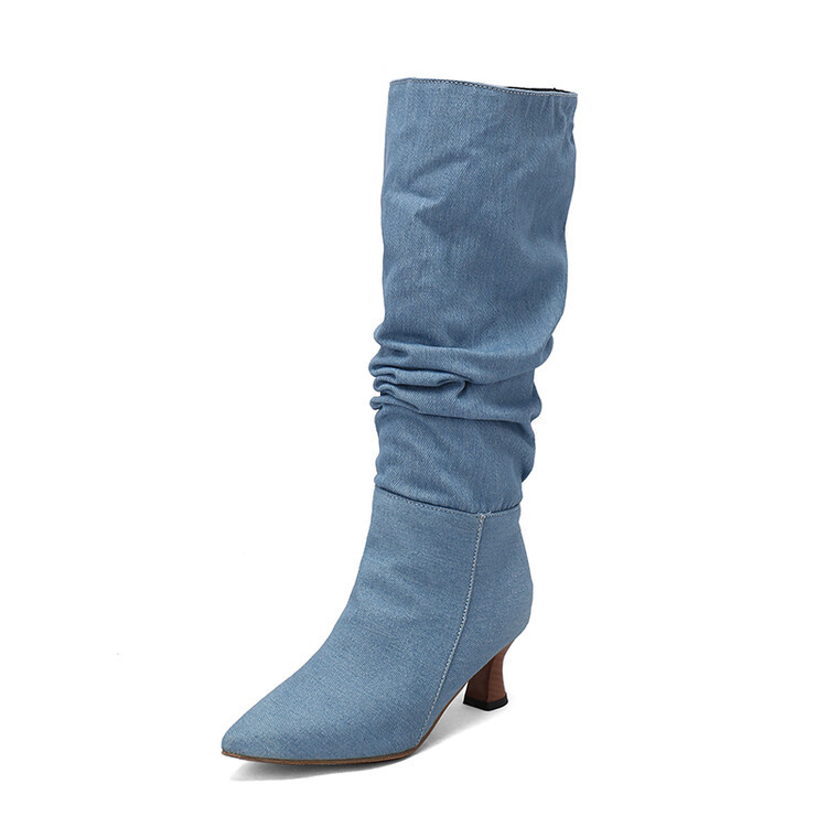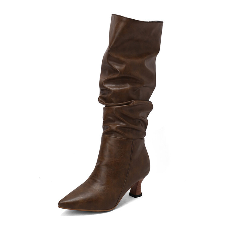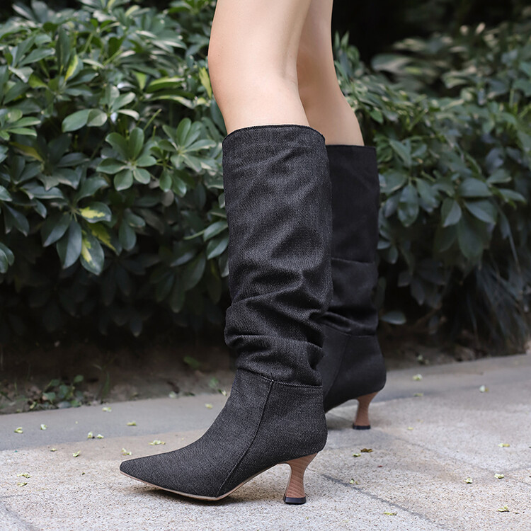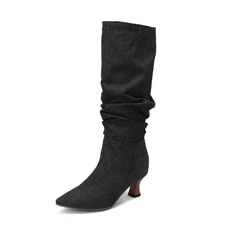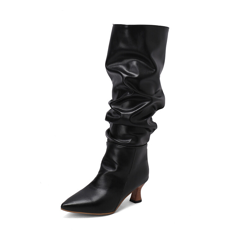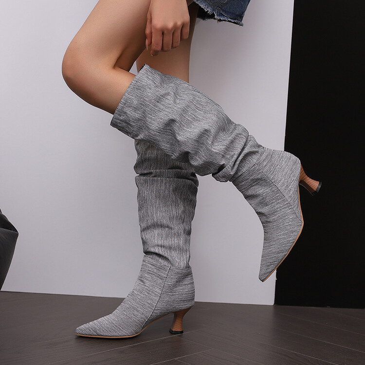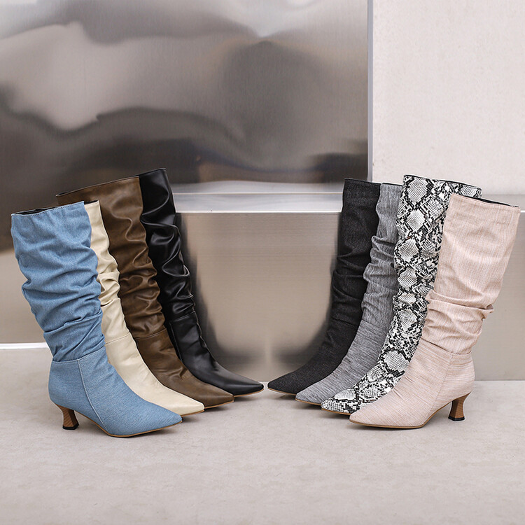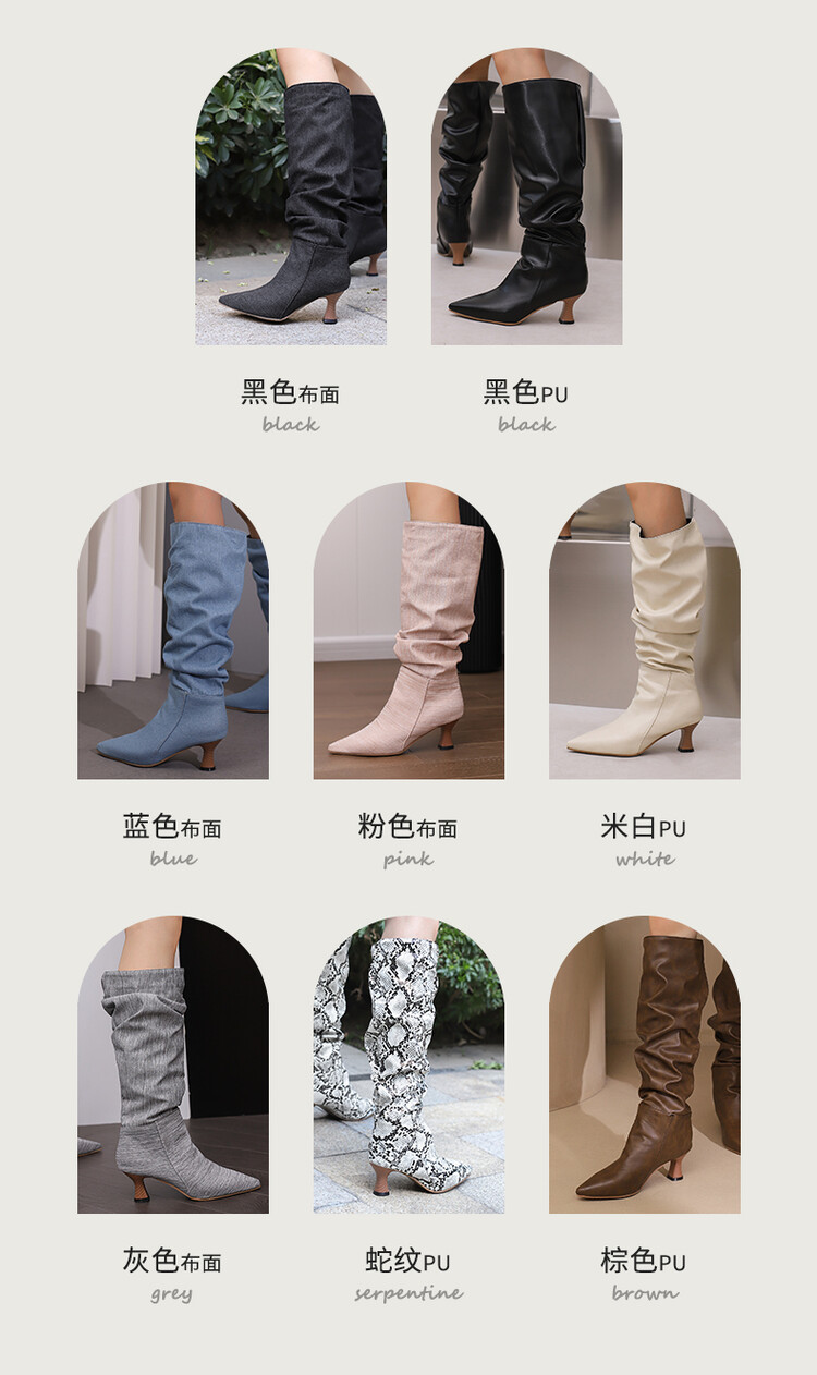 구미 이베이 해외 무역 플리츠 하이 부츠 40-48 사이즈 신발 2023 가을 신상 부츠 공장 다이렉트 나이트 부츠스토어 가기