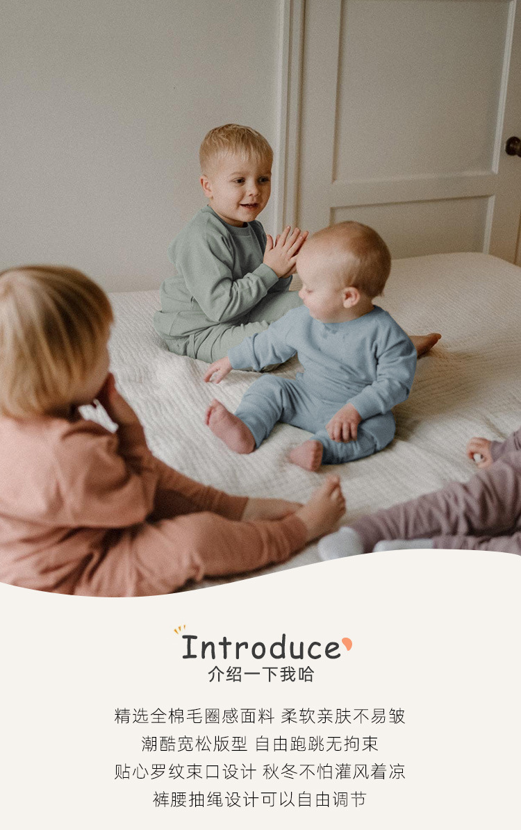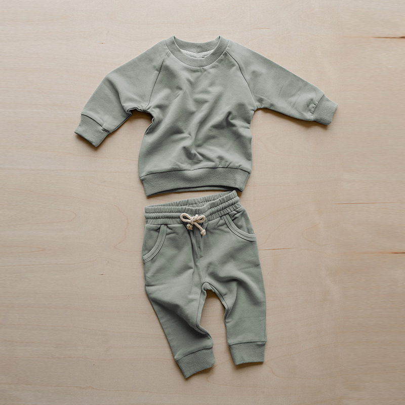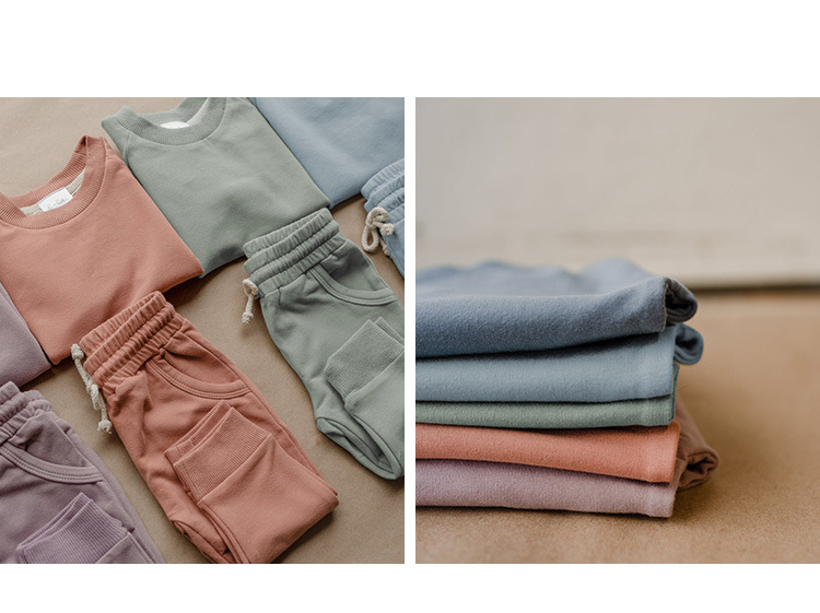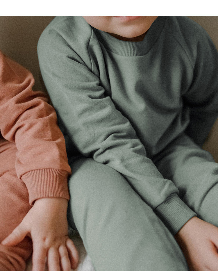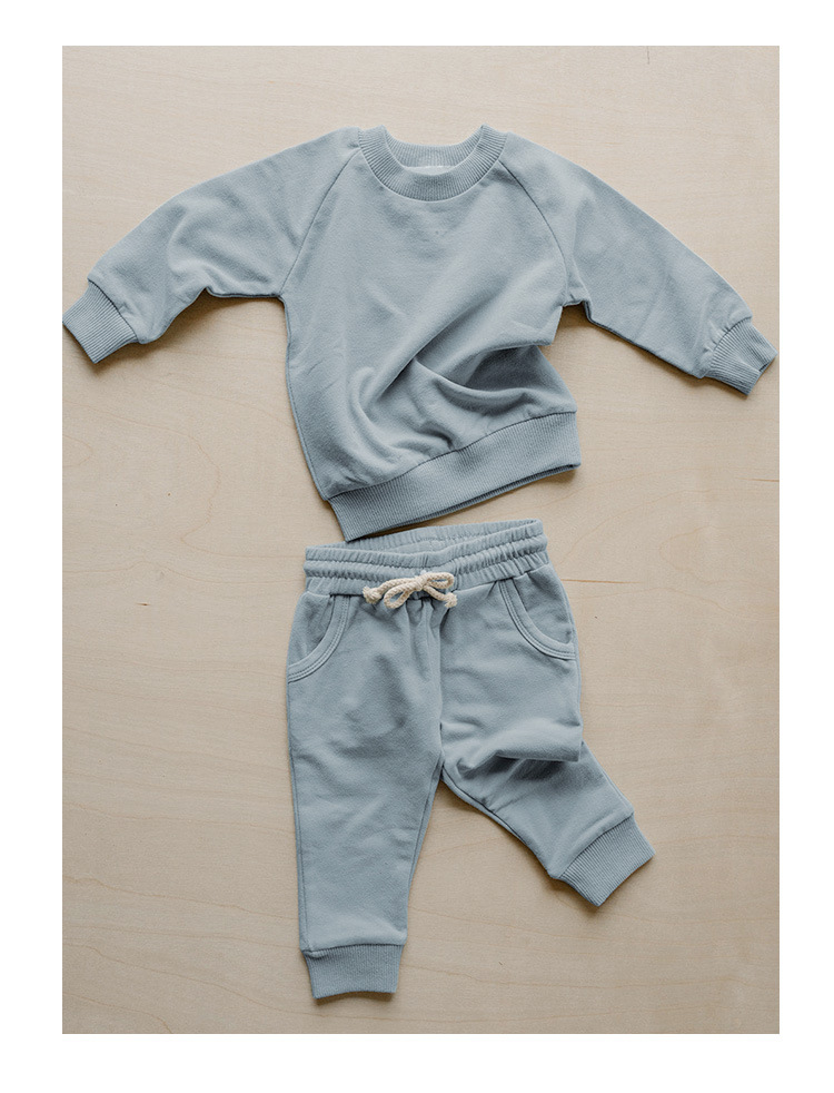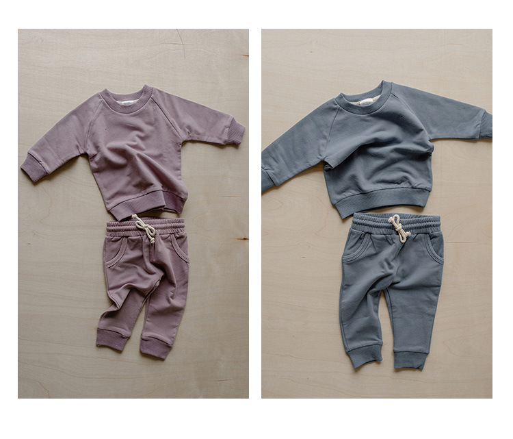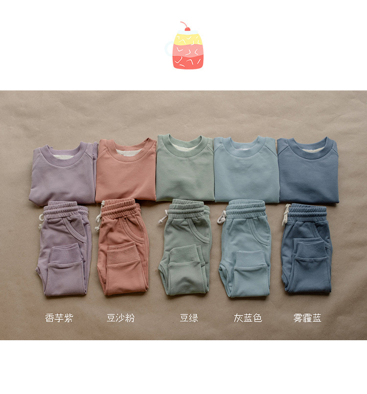 가을 아동복 다용도 순면 스웨트셔츠 세트 라운드넥 긴팔 상의 조임끈 바지 단색 홈웨어 아동복스토어 가기