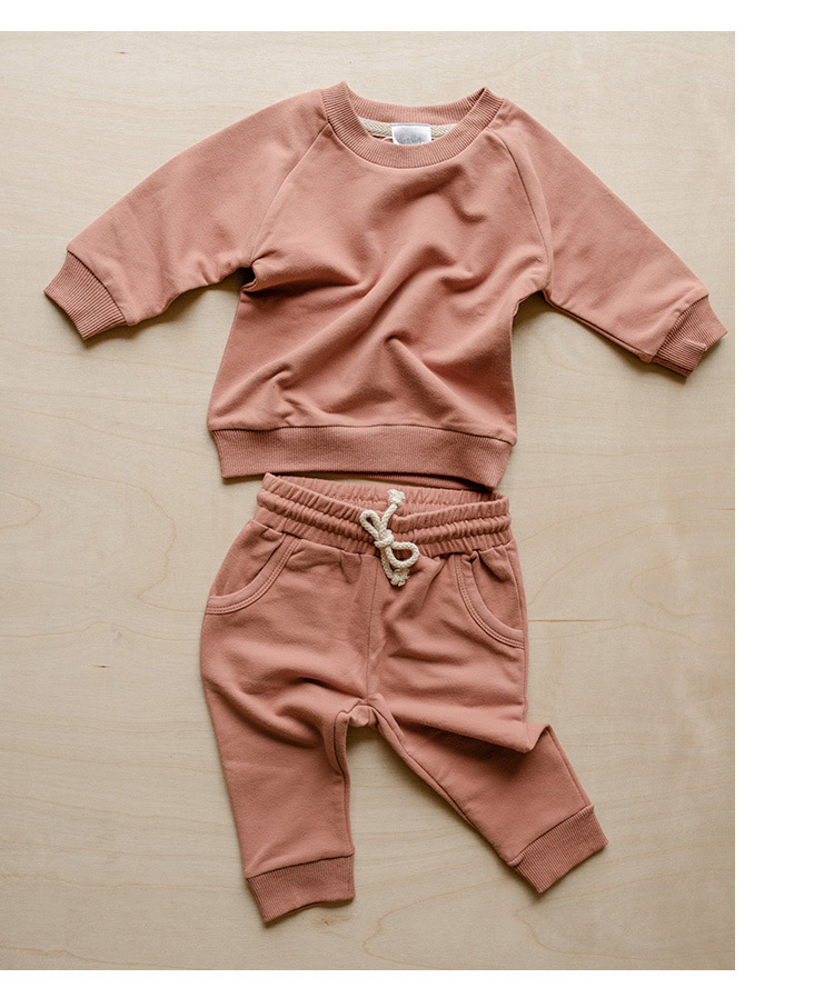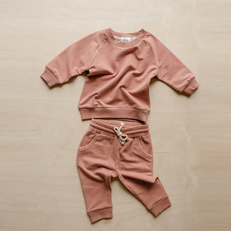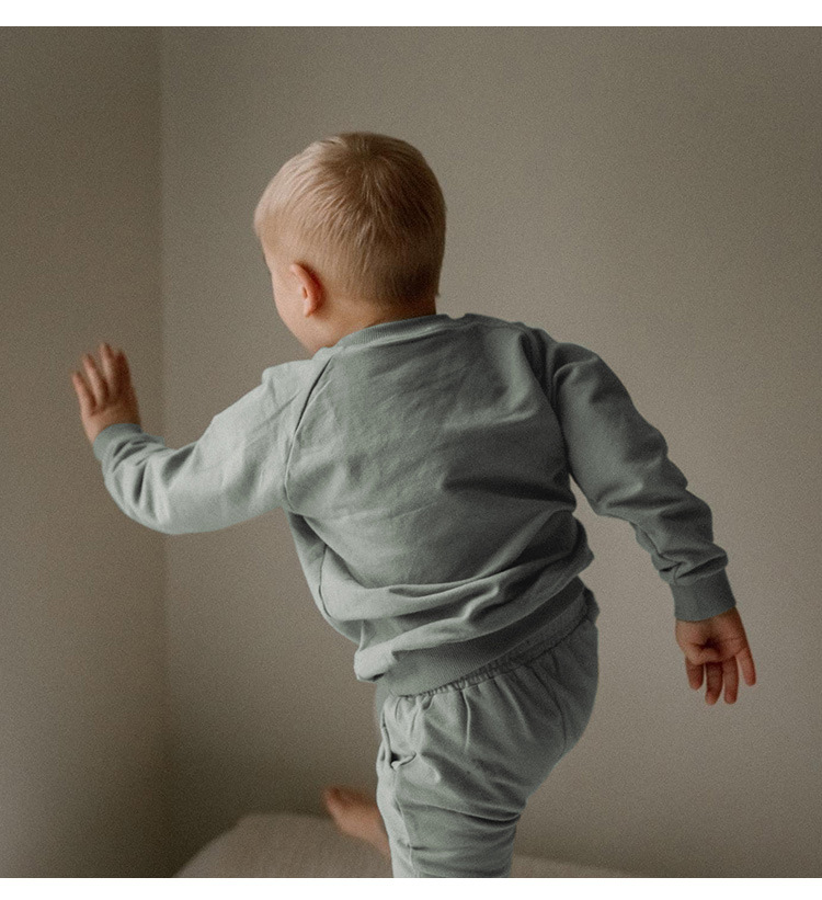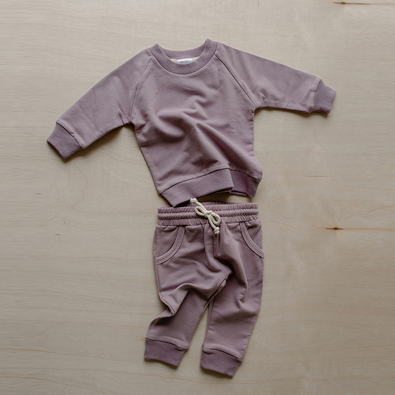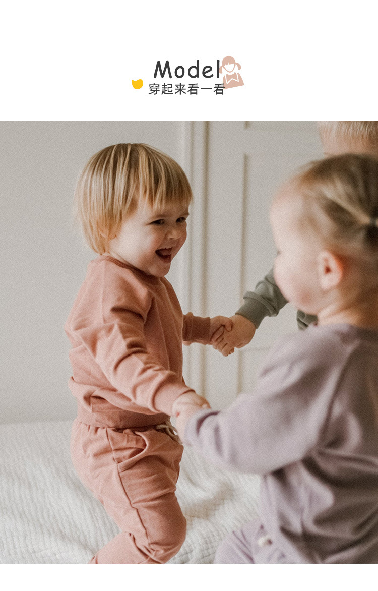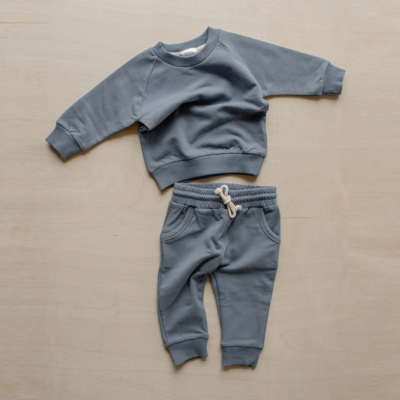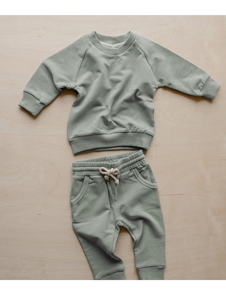 가을 아동복 다용도 순면 스웨트셔츠 세트 라운드넥 긴팔 상의 조임끈 바지 단색 홈웨어 아동복스토어 가기