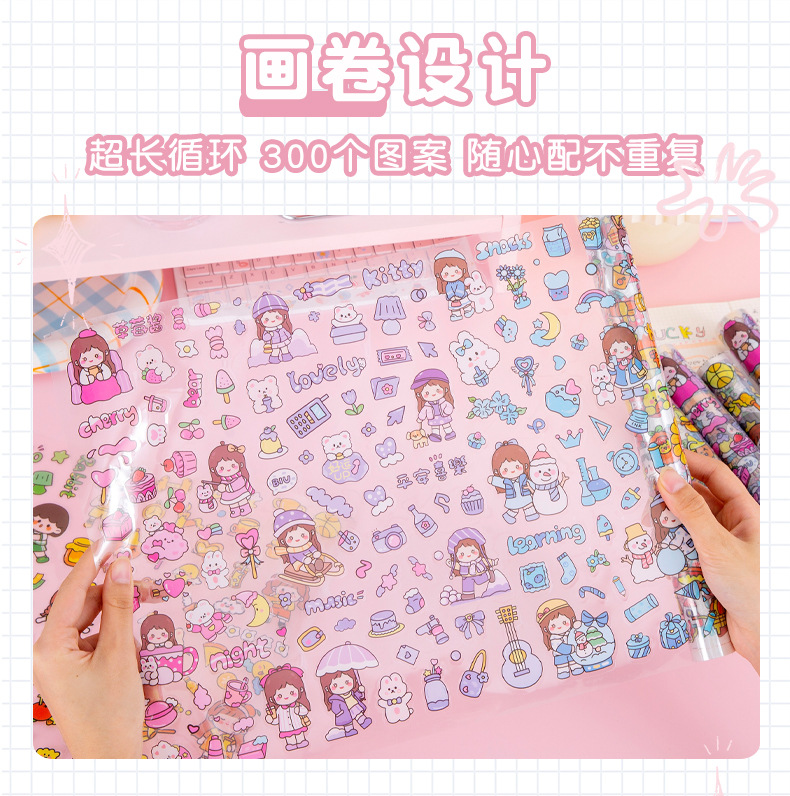 만화 롤 스티커 컷 프리 전체 롤 귀여운 소녀 손 계정 테이프 어린이 장식 스티커