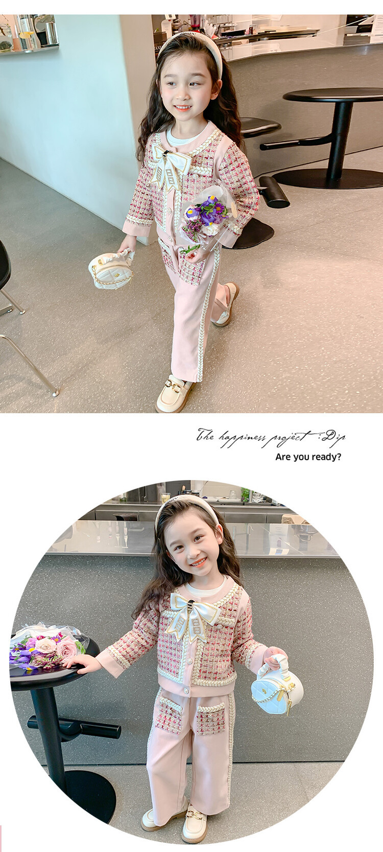 소녀 세트 가을 의류 2023 새로운 어린이 서양식 샤넬 스타일 넓은 다리 바지 아기 소녀의 봄과 가을 유행 투피스 세트스토어 가기
