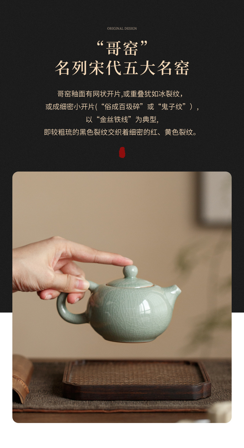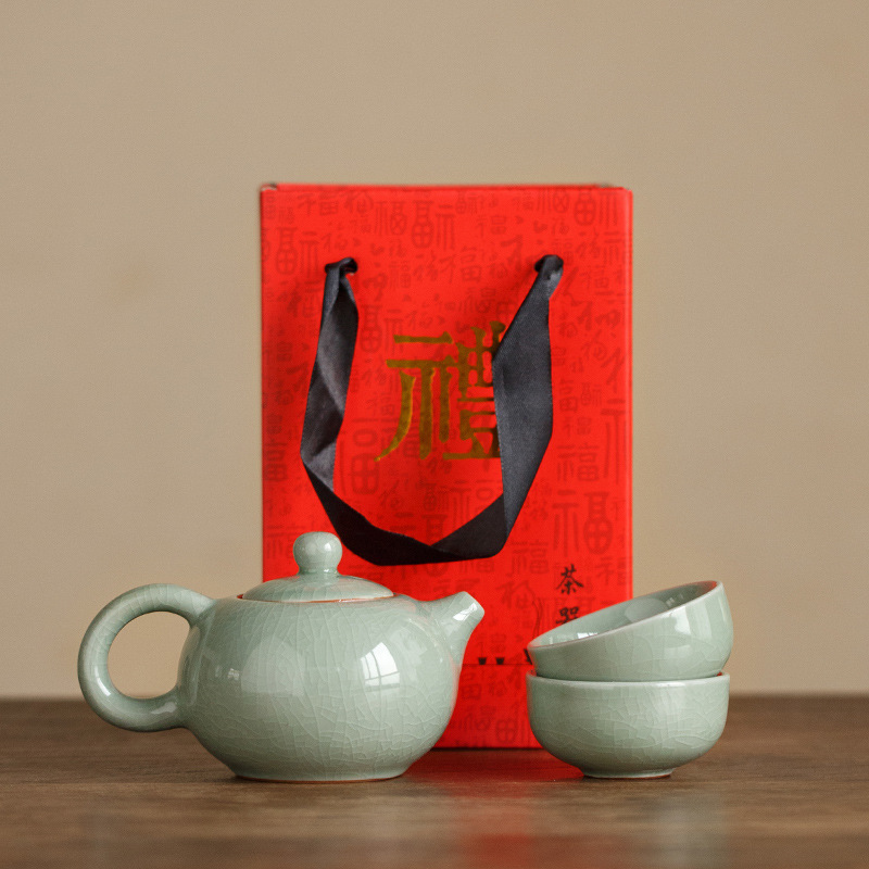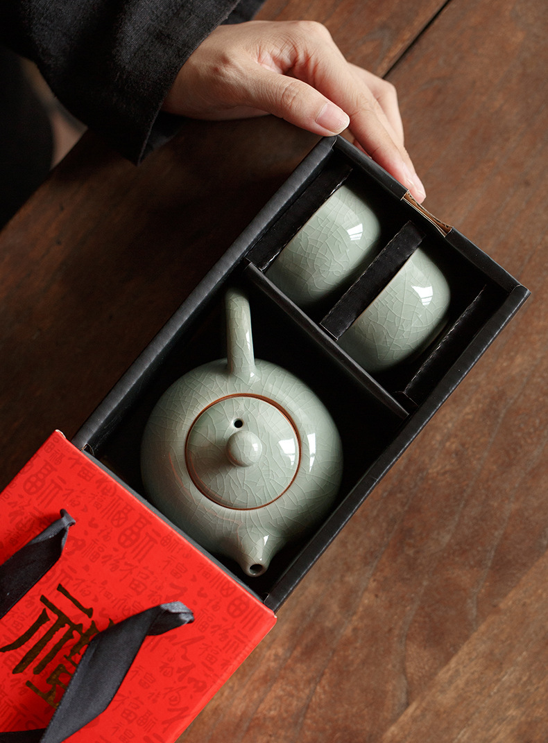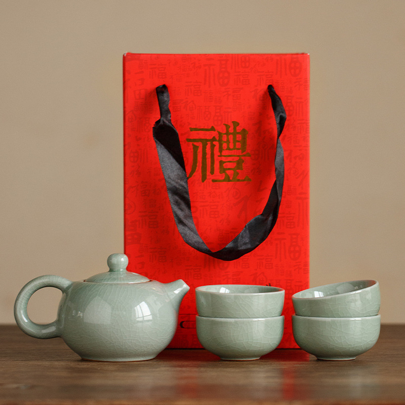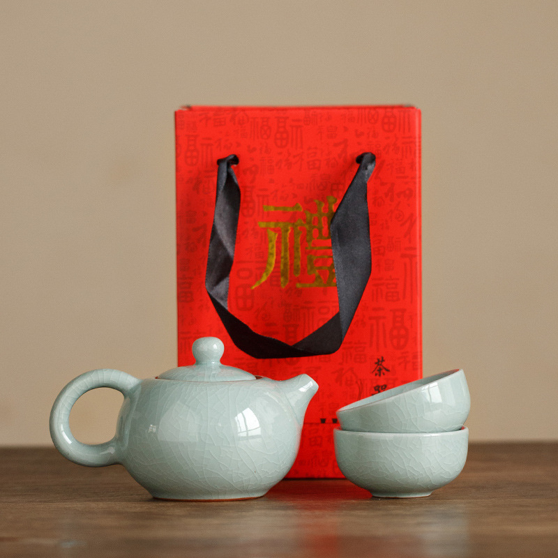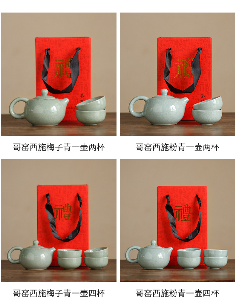 Ge Kiln 한 냄비 두 컵 네 컵 차 세트 세트 쿵푸 차 세트 세라믹 동반 새로운 중국 스타일 선물 상자 세트 로고스토어 가기