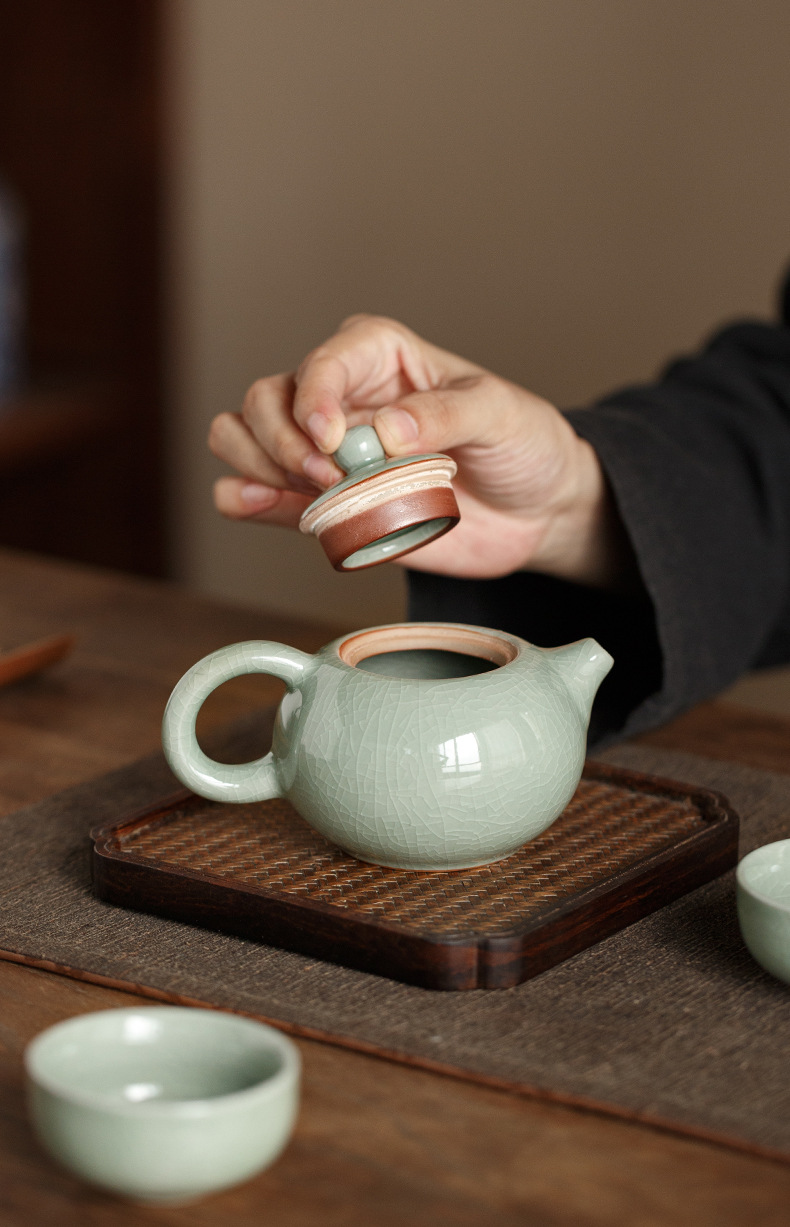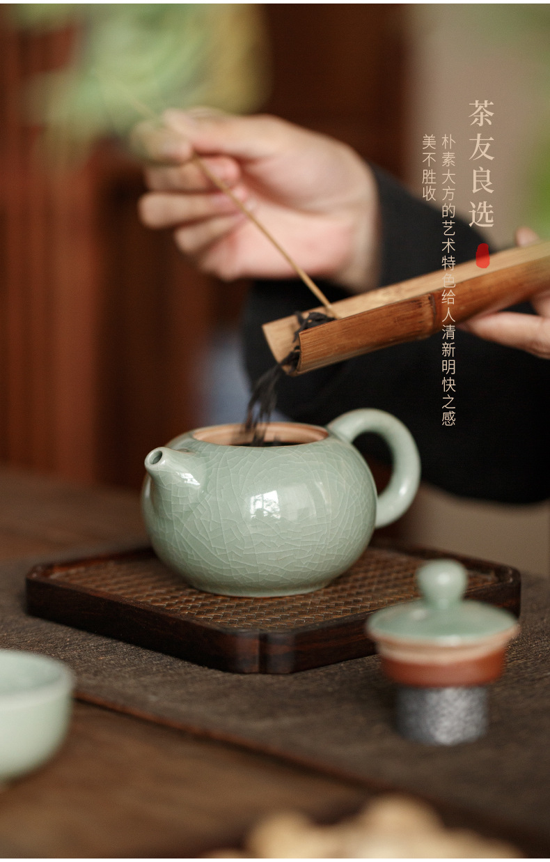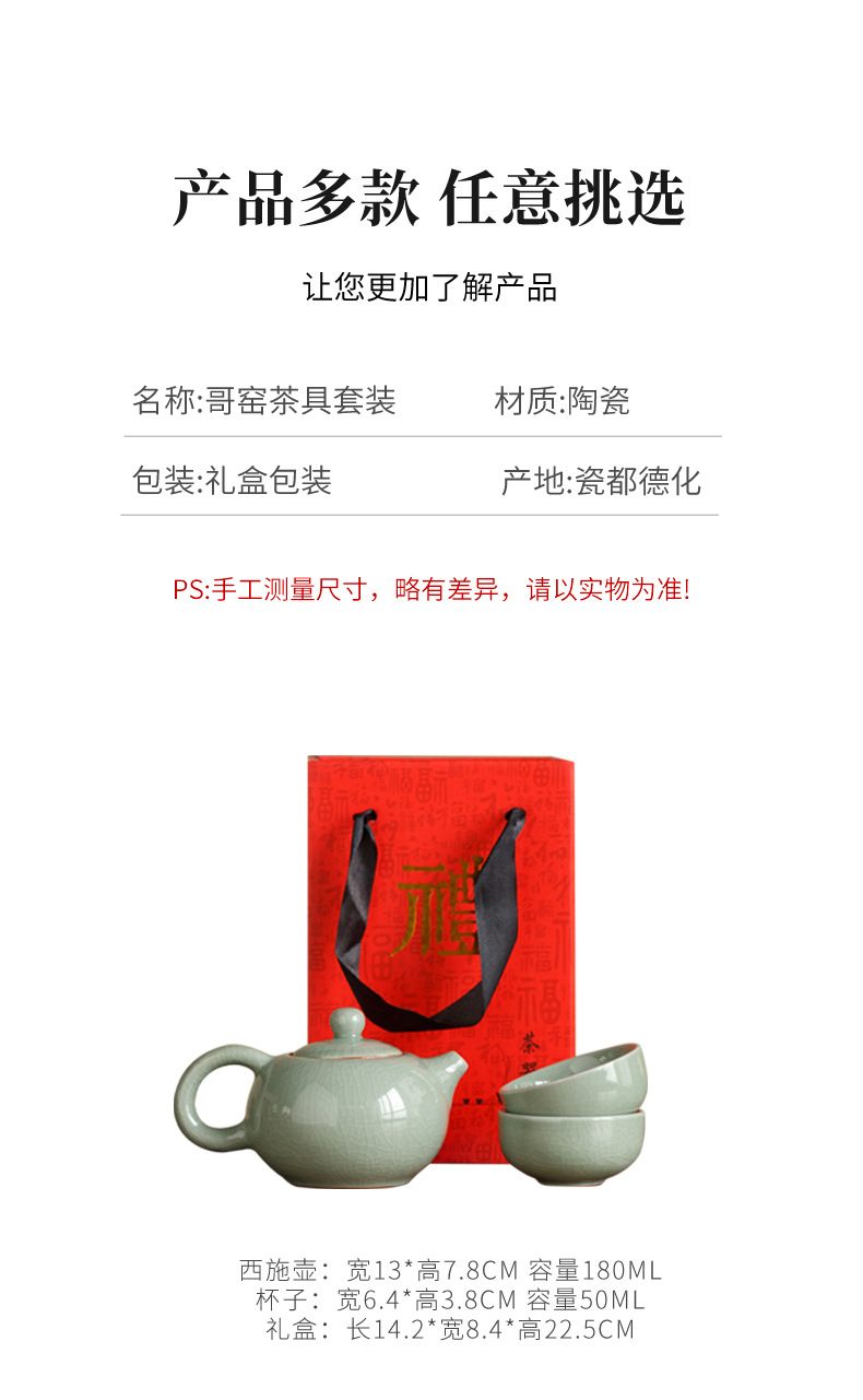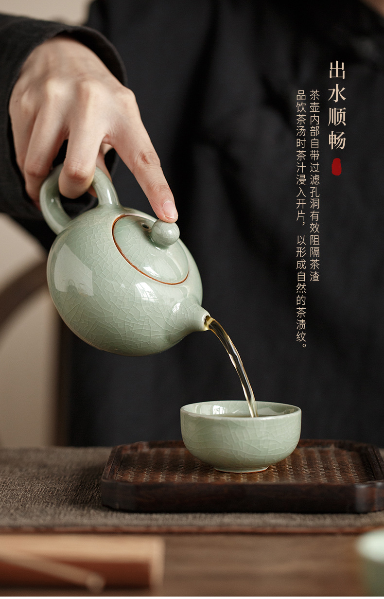 Ge Kiln 한 냄비 두 컵 네 컵 차 세트 세트 쿵푸 차 세트 세라믹 동반 새로운 중국 스타일 선물 상자 세트 로고스토어 가기