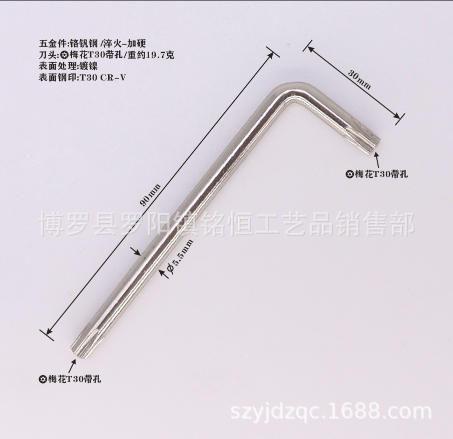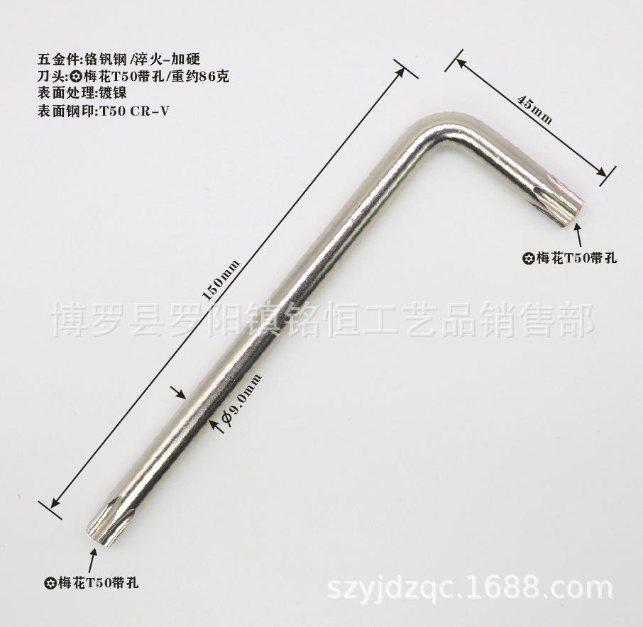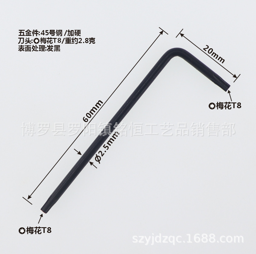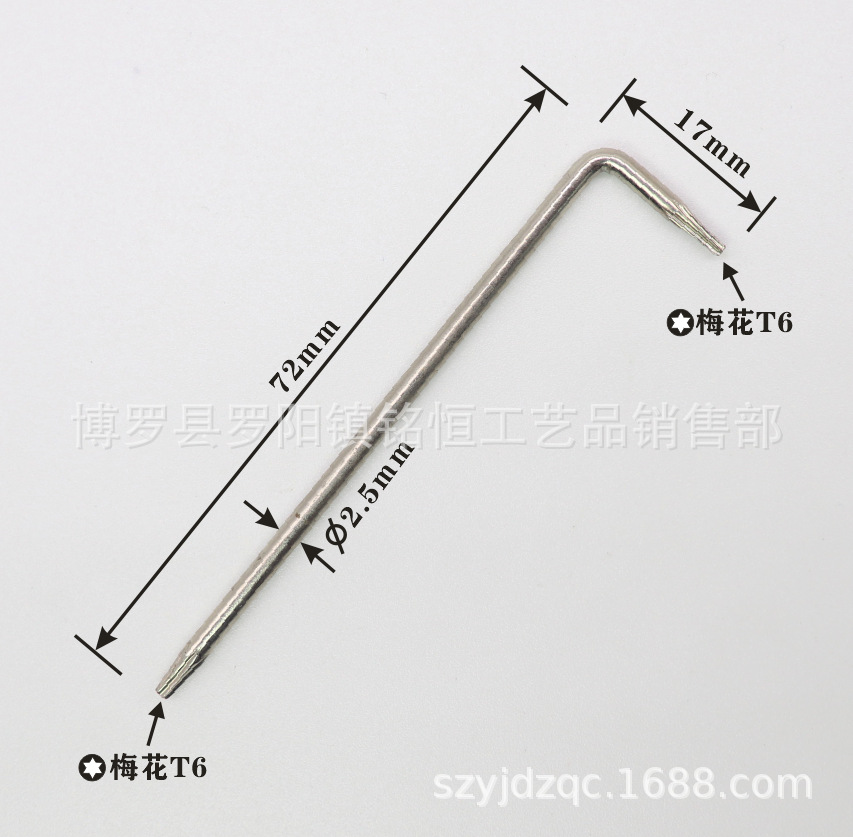 刀杆粗4.5mm,长边(T25梅花带孔)85MM,短边(T25梅花带孔)25MM,