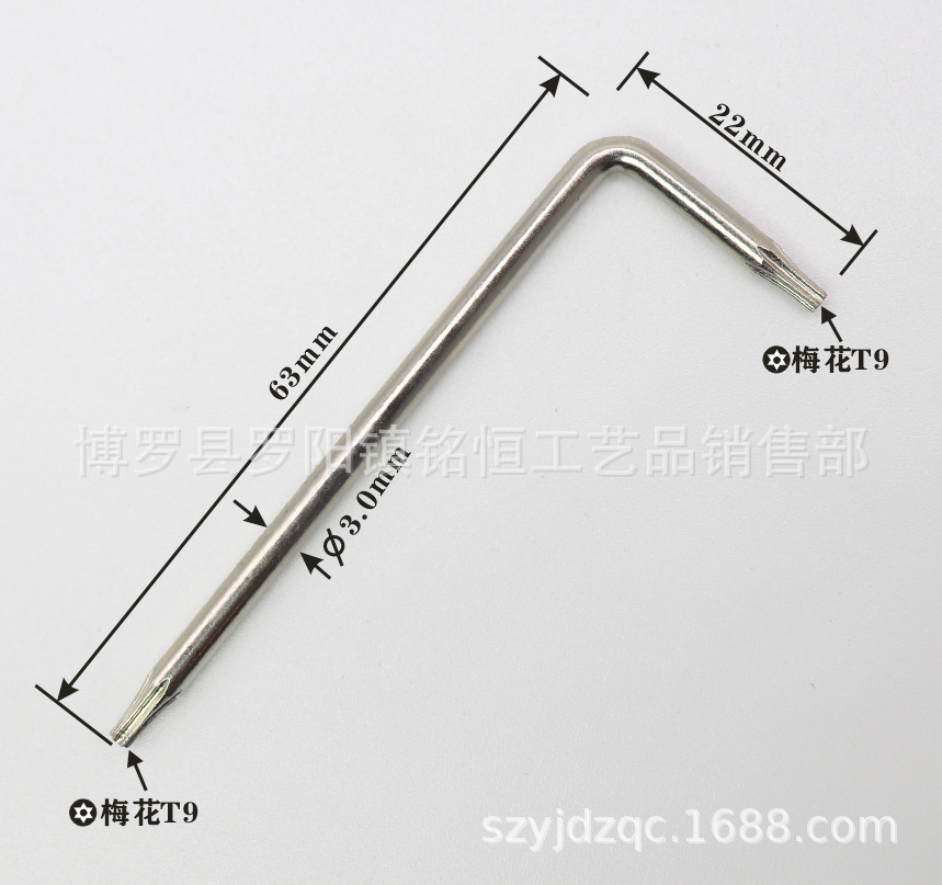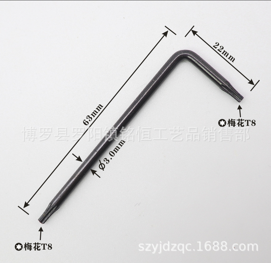 刀杆粗3mm,长边(T10梅花带孔)63MM,短边(T10梅花带孔)22MM