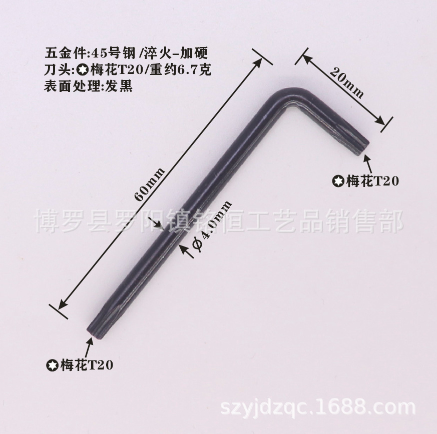 刀杆粗4mm,长边(T20梅花带孔)120MM,短边(T20梅花带孔)25MM