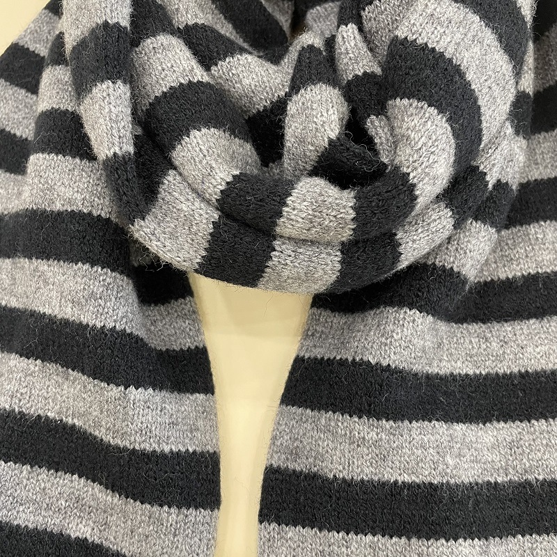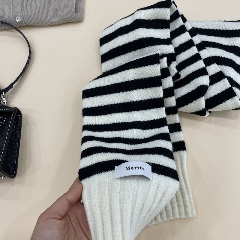 인터넷 연예인 스트라이프 스카프 여성의 한국 스타일 진한 베이지 따뜻한 니트 울 스카프 긴 목도리 가을과 겨울 캐주얼 모든 일치 유행
