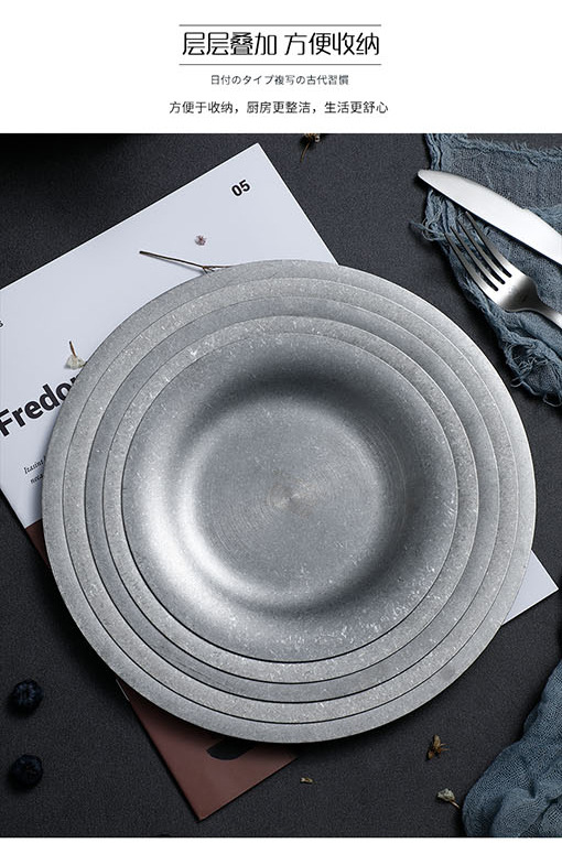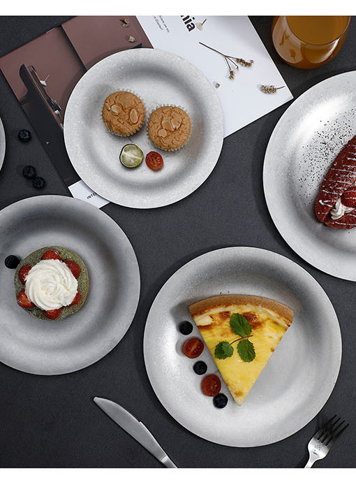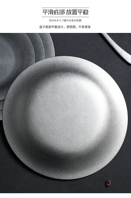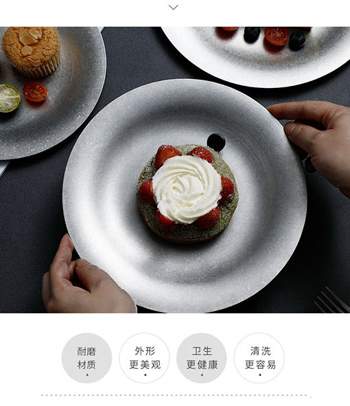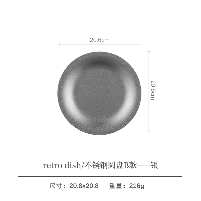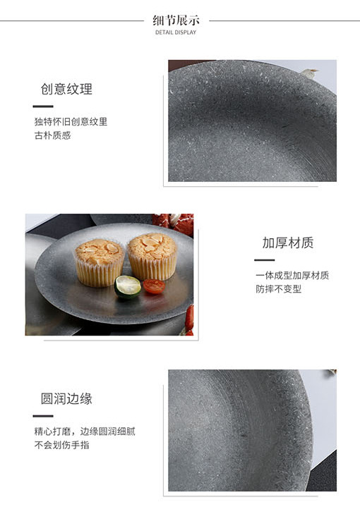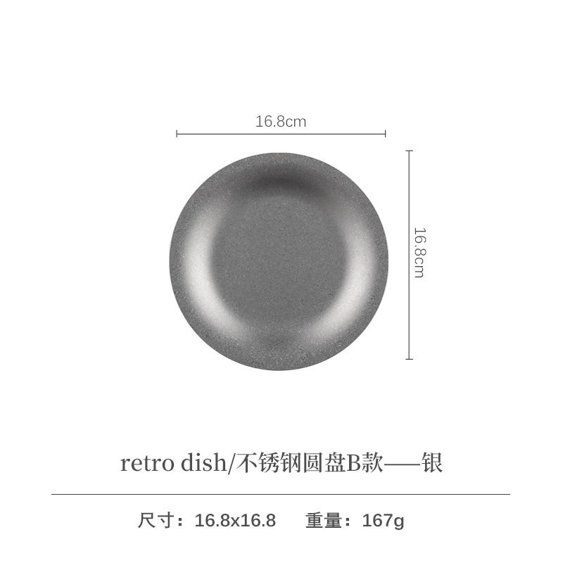 레트로 스타일 플레이트 산업 스타일 빈티지 식기 두꺼운 스테인레스 스틸 플레이트 디저트 커피 애프터눈 티 케이크 트레이스토어 가기