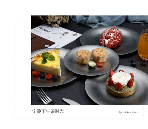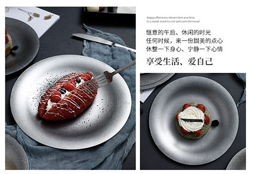 레트로 스타일 플레이트 산업 스타일 빈티지 식기 두꺼운 스테인레스 스틸 플레이트 디저트 커피 애프터눈 티 케이크 트레이