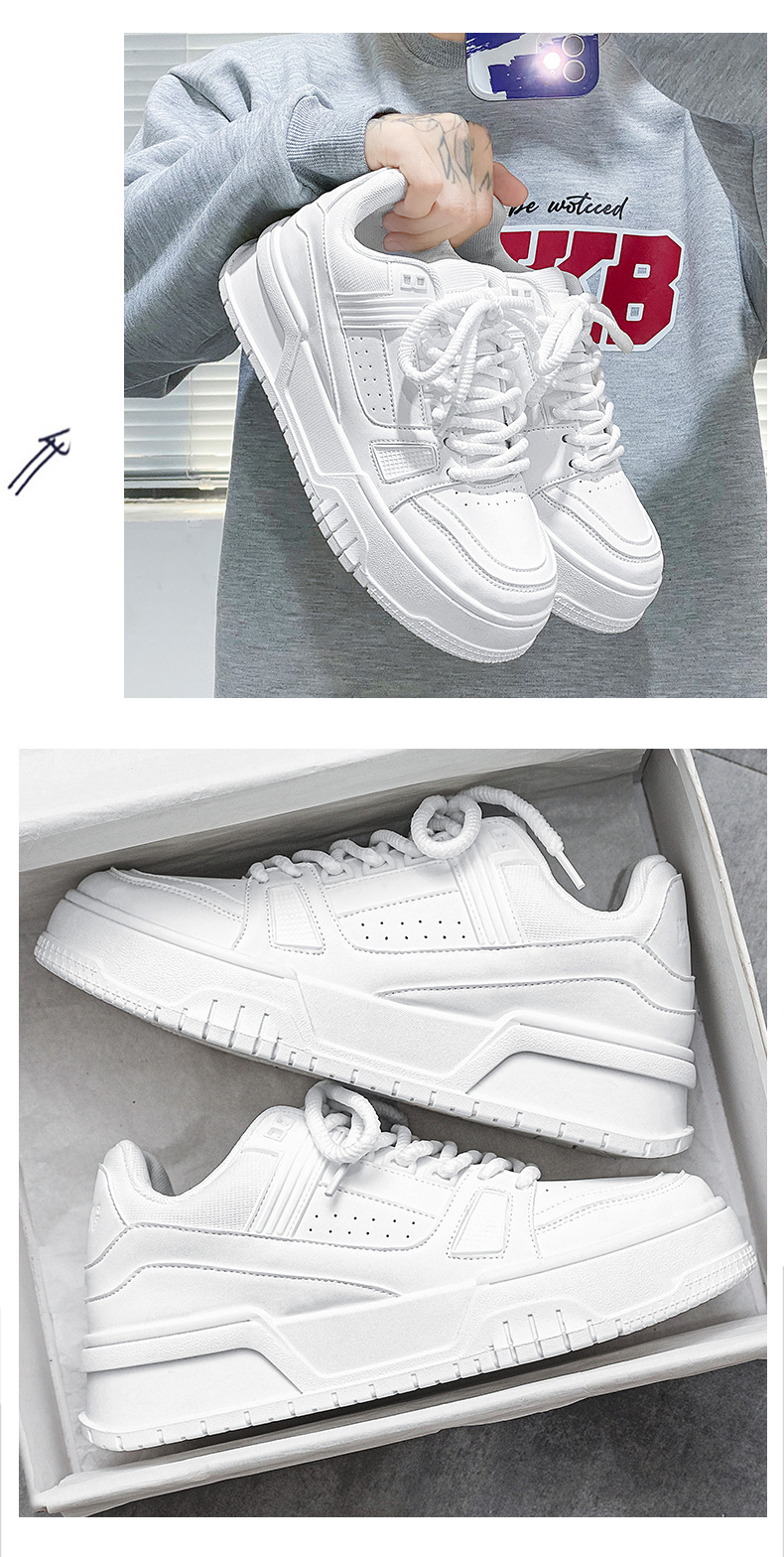 소년 작은 흰색 운동화 새로운 두꺼운 밑창 캐주얼 신발 심플 모든 매치 단색 패션 스포츠 트렌디 신발 두꺼운 밑창 남성 신발