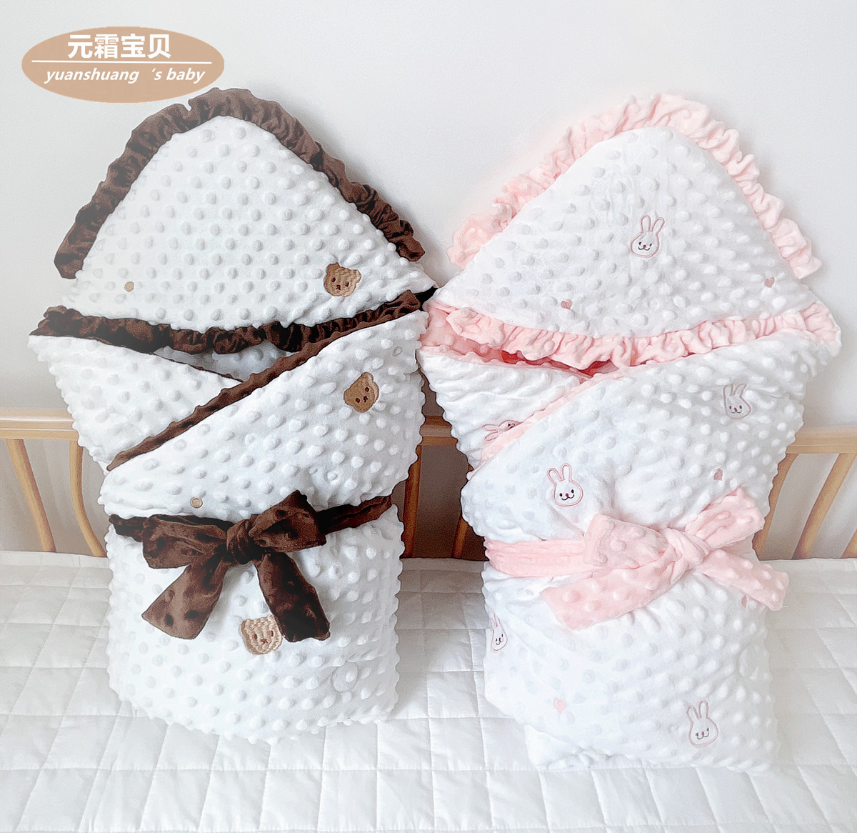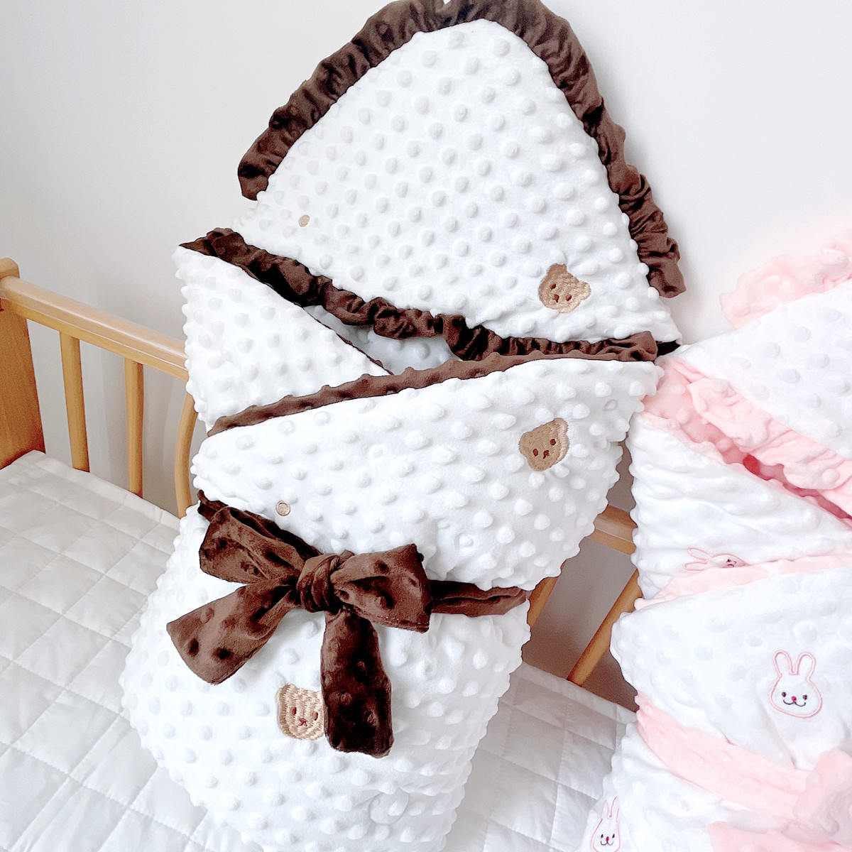 북유럽 스타일 완두콩 벨벳 아기 이불 신생아 가방 봄과 가을과 겨울 신생아 아기 랩 기모 두껍게스토어 가기