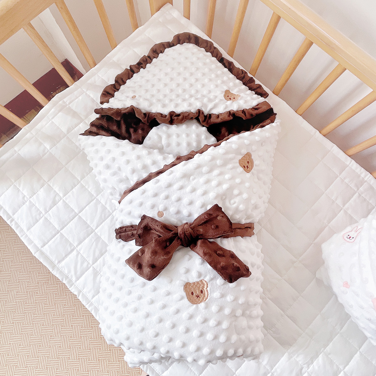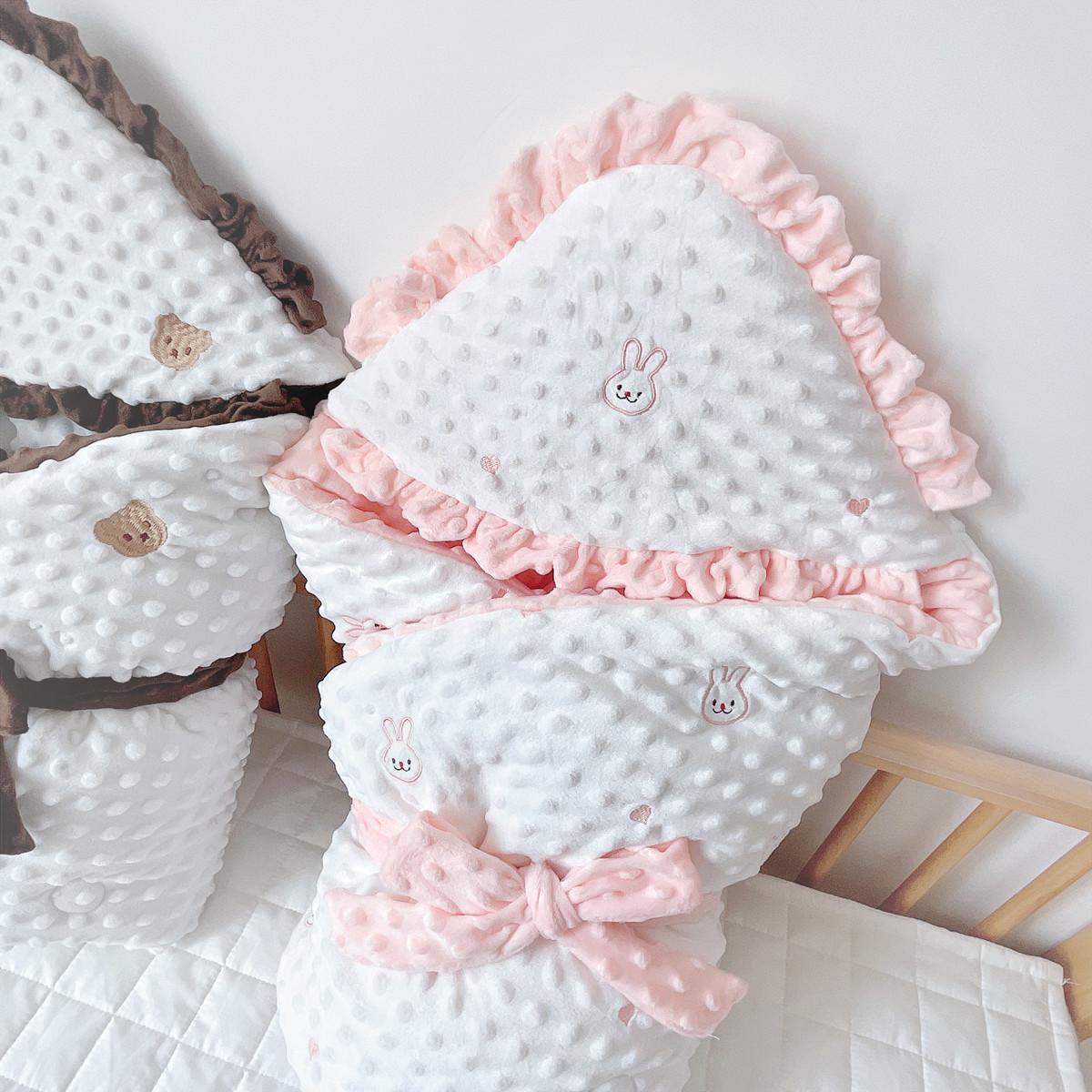 북유럽 스타일 완두콩 벨벳 아기 이불 신생아 가방 봄과 가을과 겨울 신생아 아기 랩 기모 두껍게