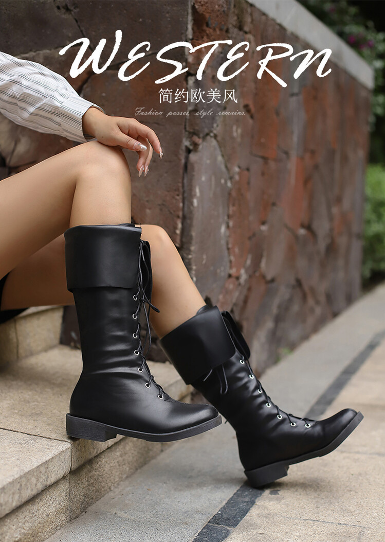 2023 가을 새 기사 부츠 크로스 스트랩 접이식 하이 부츠 35-48 대외 무역 대형 신발 AliExpress 대외 무역스토어 가기