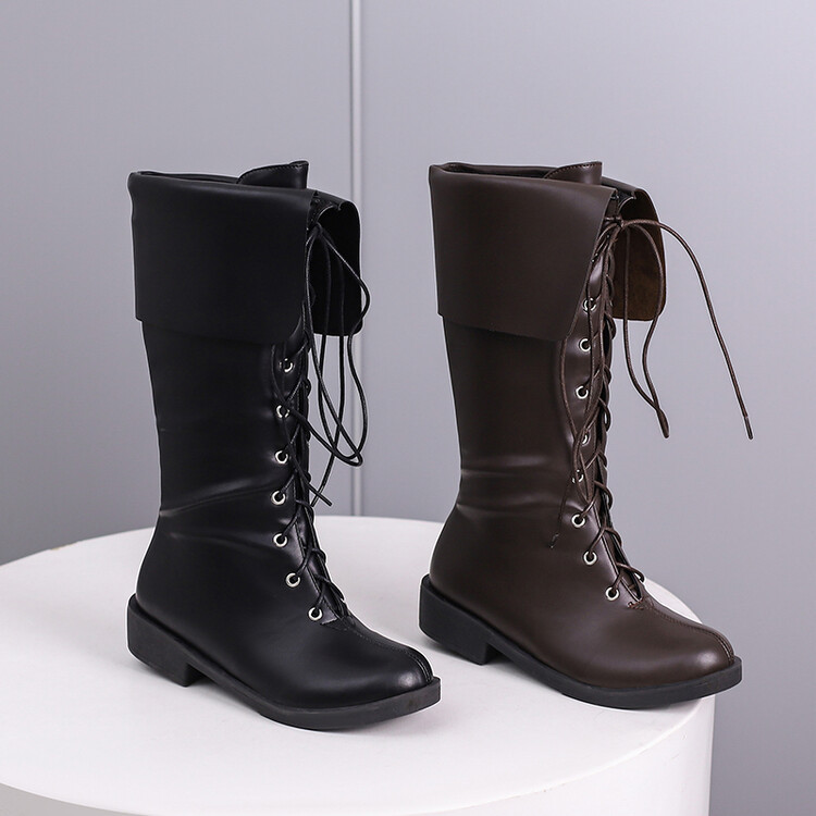 2023 가을 새 기사 부츠 크로스 스트랩 접이식 하이 부츠 35-48 대외 무역 대형 신발 AliExpress 대외 무역
