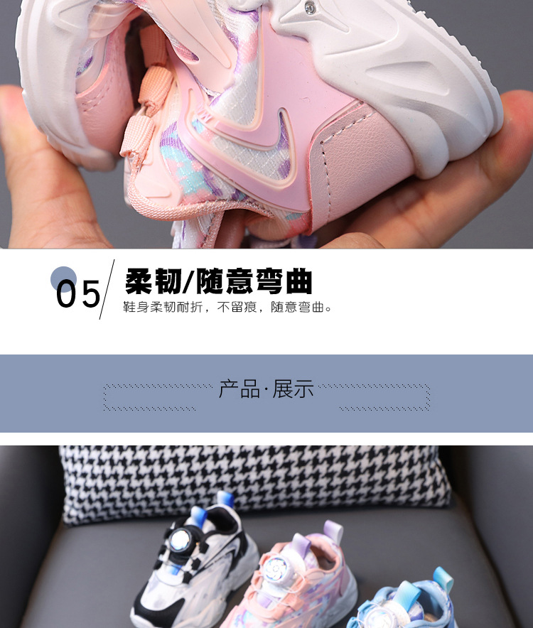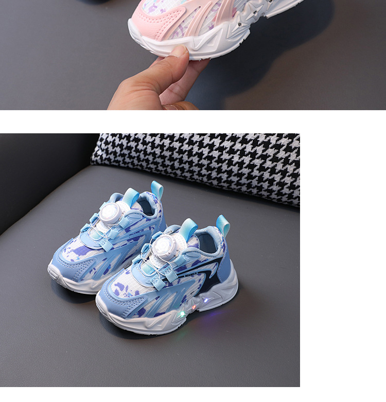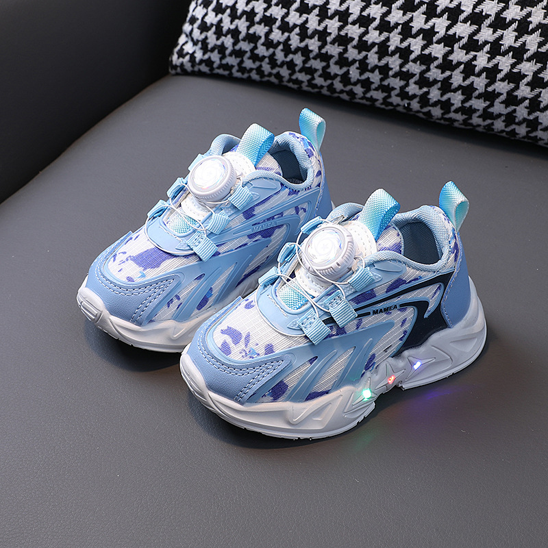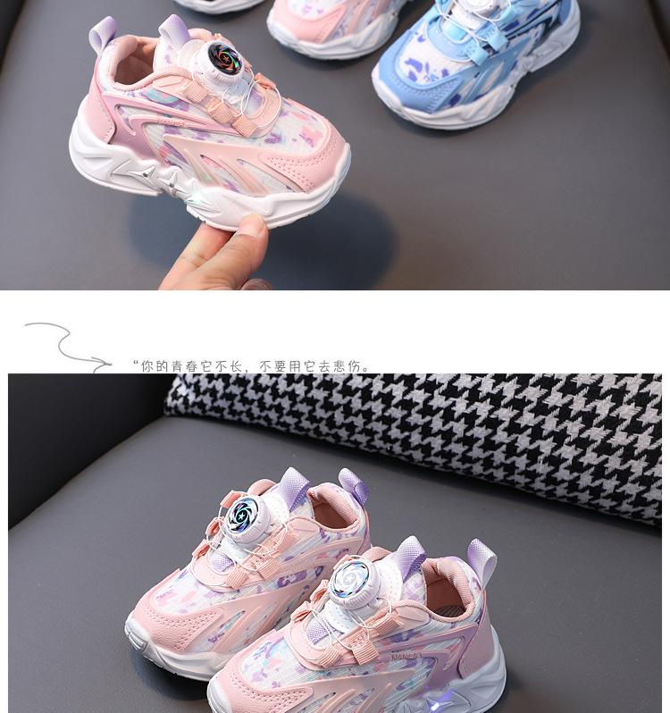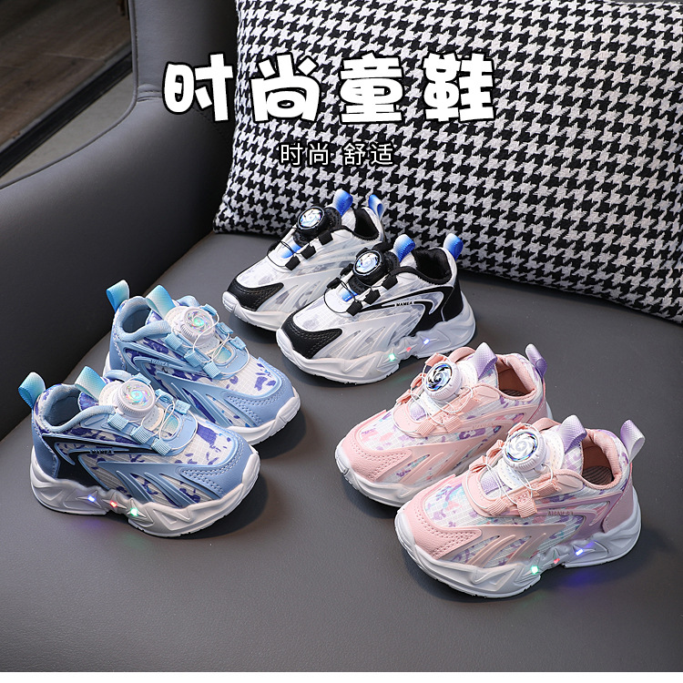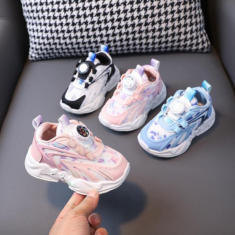 2023 봄과 가을 새로운 어린이 운동화 소년 소녀 통기성 메쉬 신발 어린이 회전 버클 운동화 번쩍이는 신발스토어 가기