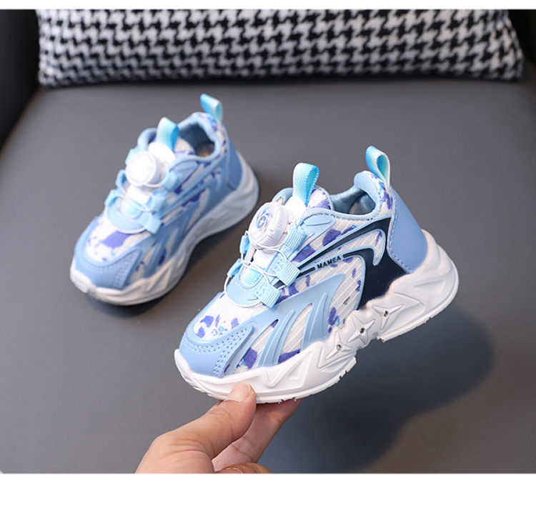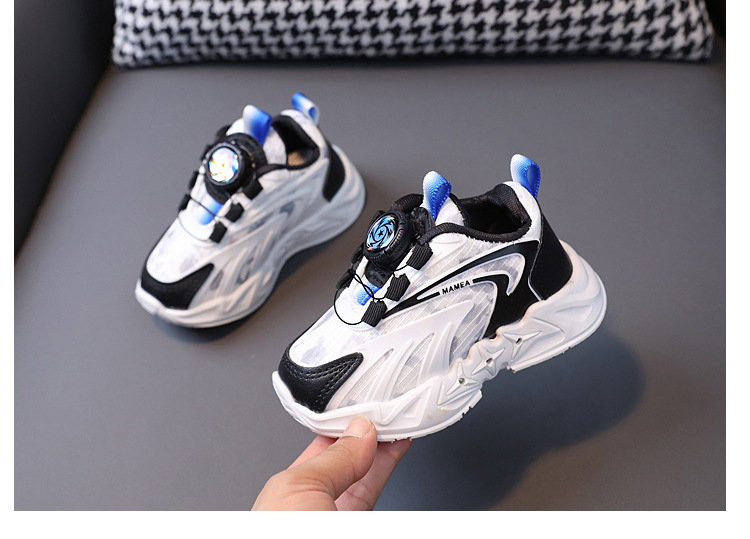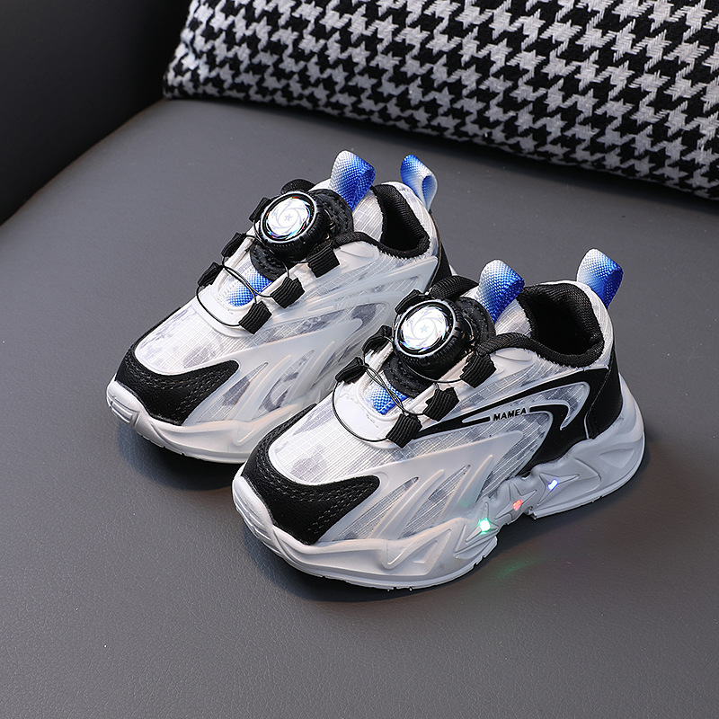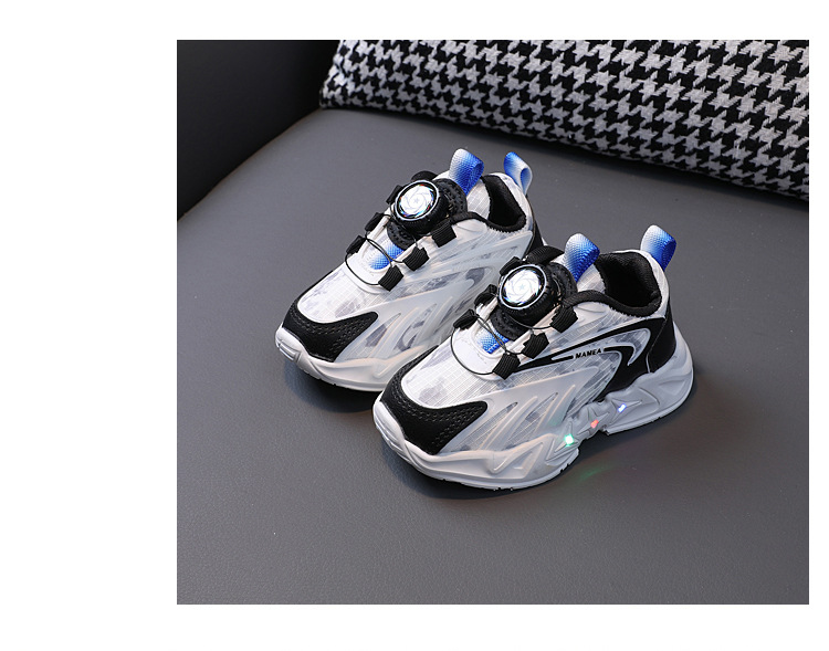 2023 봄과 가을 새로운 어린이 운동화 소년 소녀 통기성 메쉬 신발 어린이 회전 버클 운동화 번쩍이는 신발