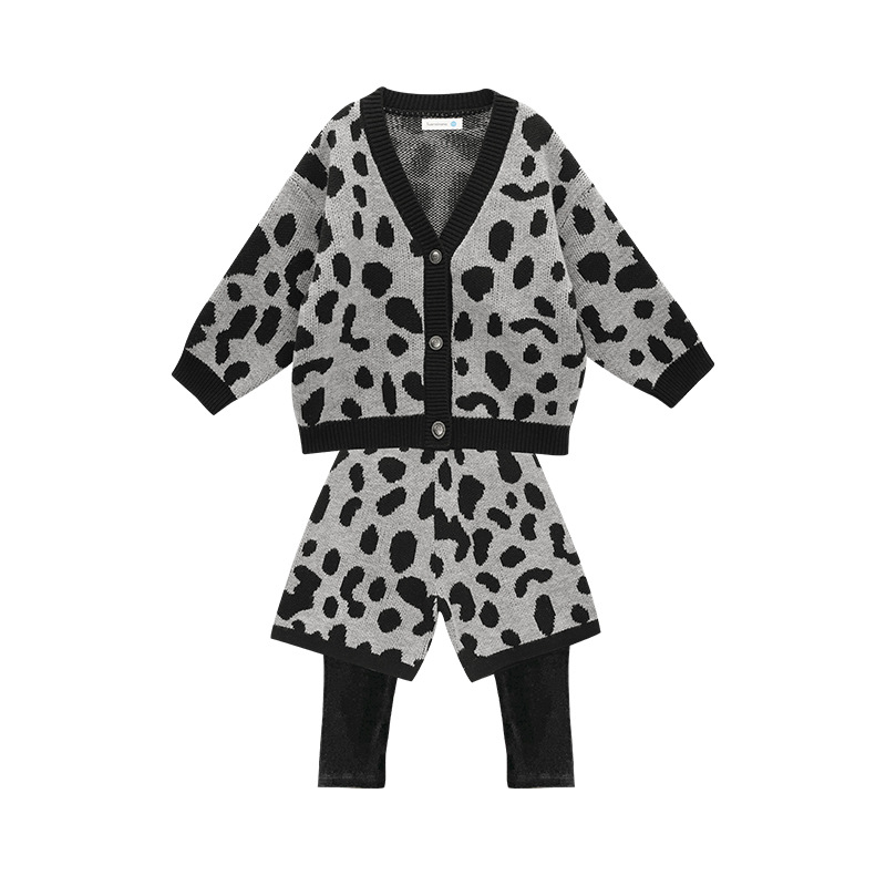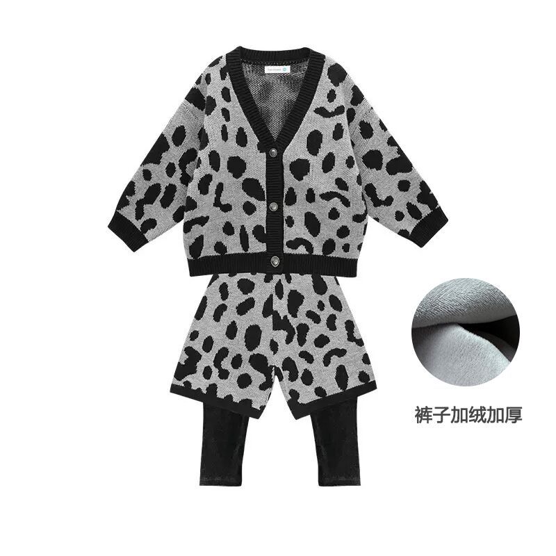남아 가을 겨울 니트 가디건 투피스 세트 2025 신상 아동용 멋진 호피무늬 재킷 유아용 패셔너블 세트
