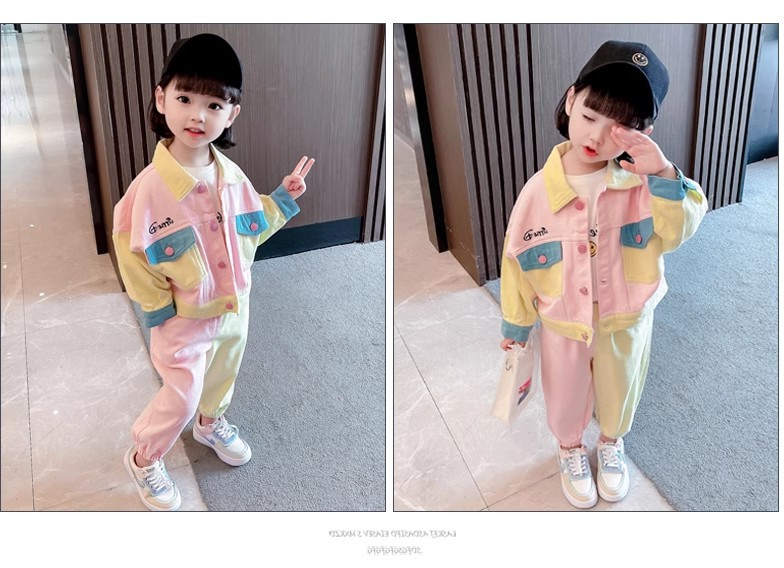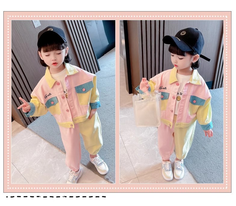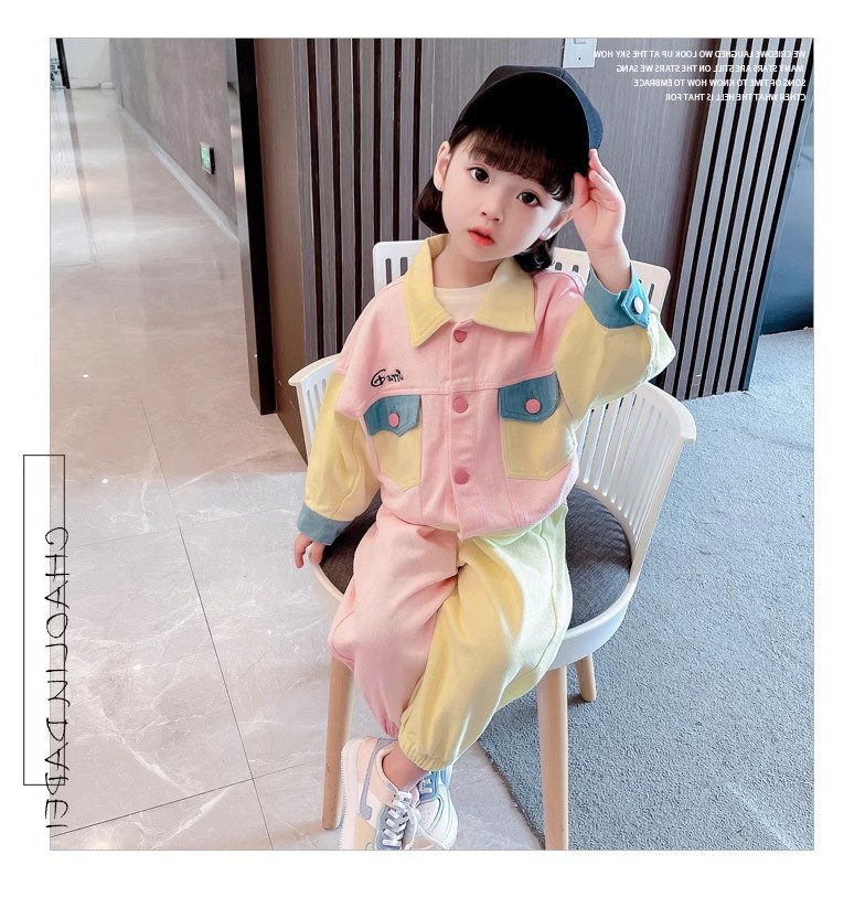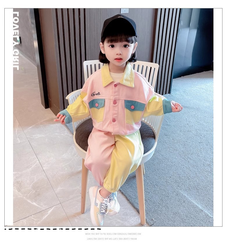 소녀상 세트 명암 옷깃 외투와 바지 2025 가을 새 대외 무역 아동복 3-8 세스토어 가기