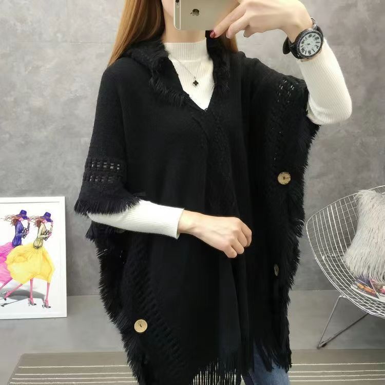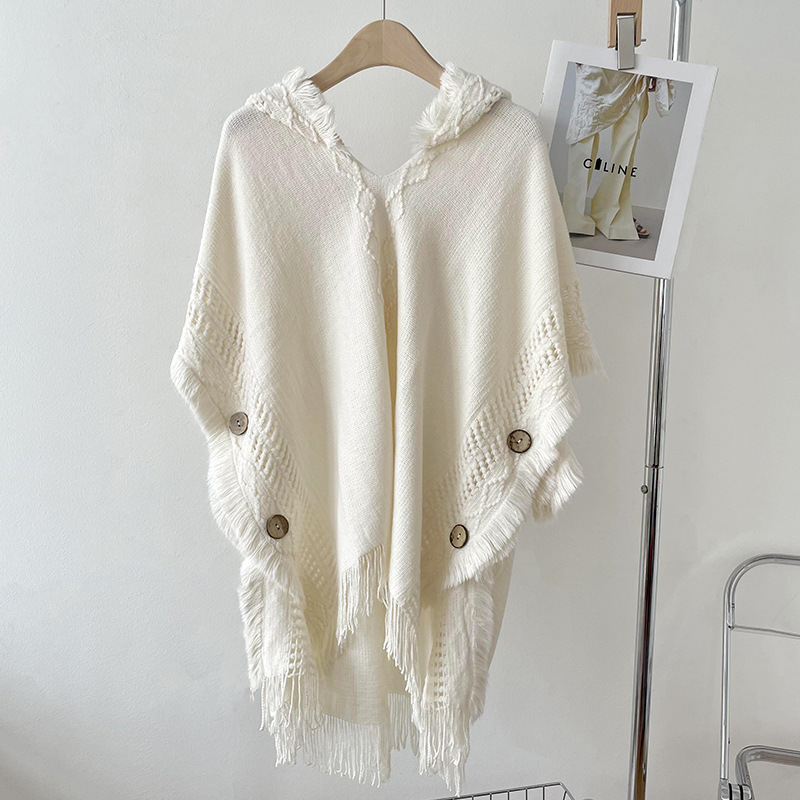 2023 가을과 겨울 새로운 단색 후드 숄 여성용 운난 여행복 니트 망토 패션 모든 매치 망토스토어 가기