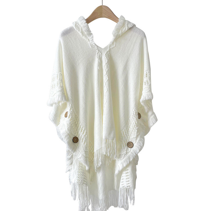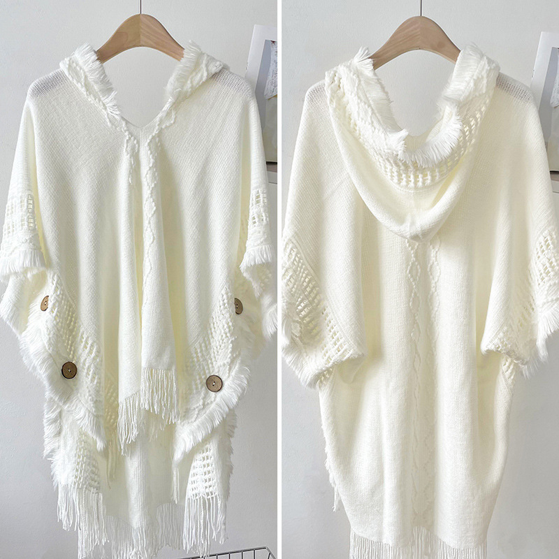 2023 가을과 겨울 새로운 단색 후드 숄 여성용 운난 여행복 니트 망토 패션 모든 매치 망토