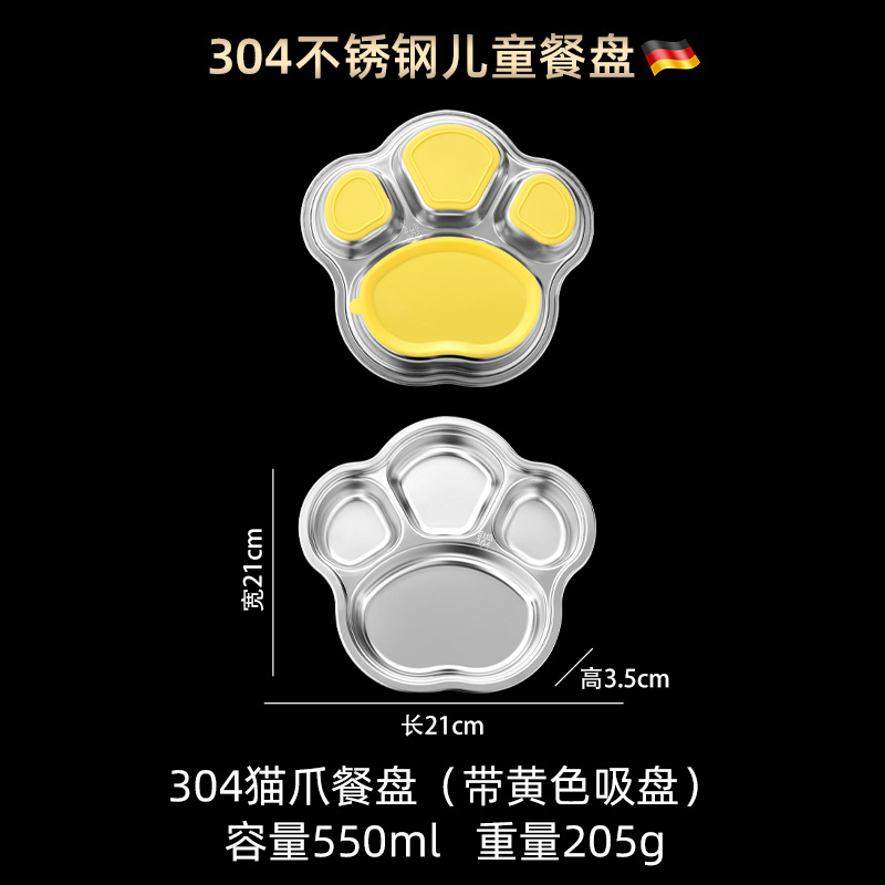 • 304 고양이발톱 디너접시(노란색 흡착컵)
