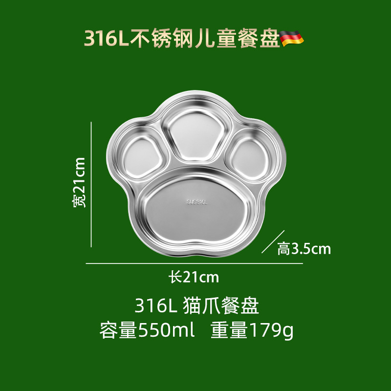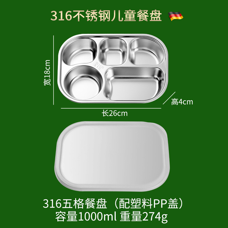 홍준다 316 스테인리스 어린이 식판, 이유식 칸막이 접시, 유치원 만화 접시, 가정용