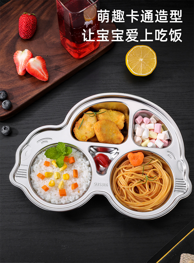 홍준다 316 스테인리스 어린이 식판, 이유식 칸막이 접시, 유치원 만화 접시, 가정용스토어 가기