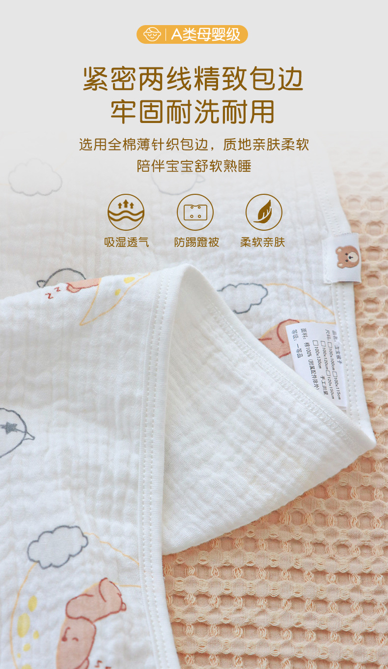 아기 목욕 타월을위한 안티 킥 퀼트 주름 거즈 인쇄 커버 담요